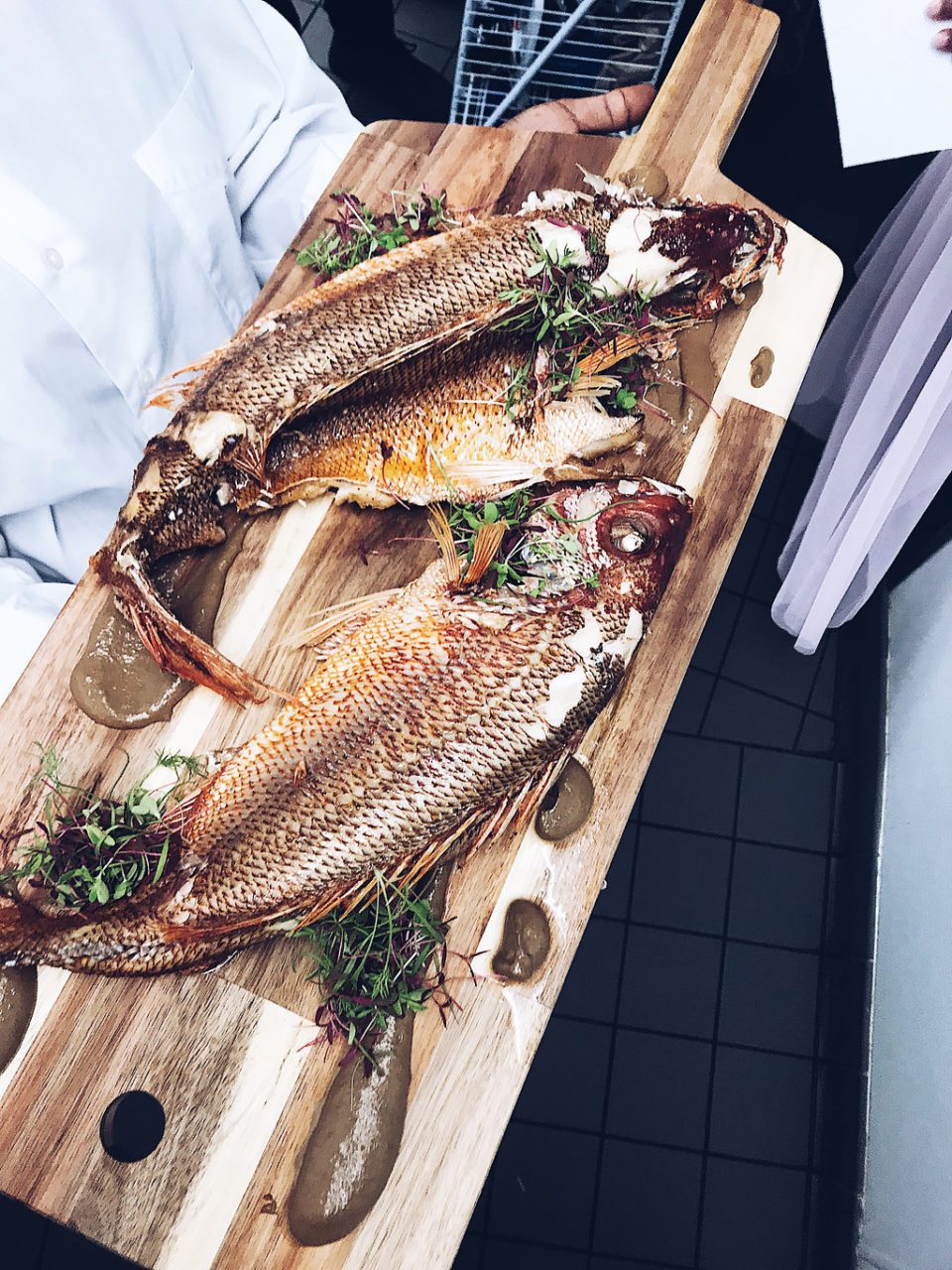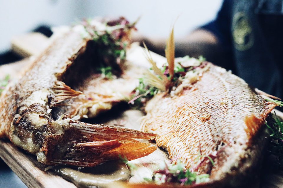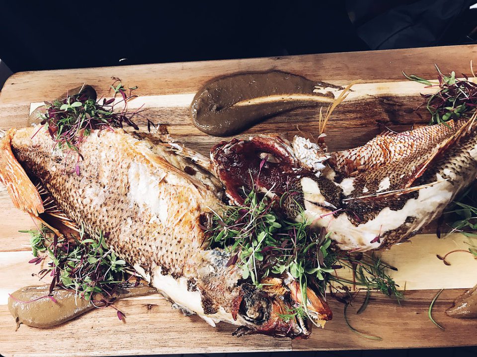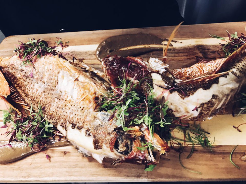 2)Whole fried Red Snapper with ginger tamarind and macerated peppers. (Ginger and pepper are our best friends and they should be yours too!