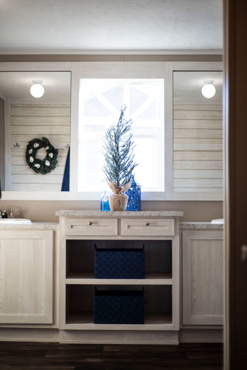 I love decorating a Christmas mantle and the Island Breeze has one built-in as a part of the home’s floor plan. It is the perfect place to celebrate the holidays with your family and add some holiday style. For a farmhouse style Lowcountry Christmas, classic creme stockings and mini oyster trees are a perfect way to add coastal style to your home. Above the mantle is a great place to put a television and watch your favorite holiday movies.