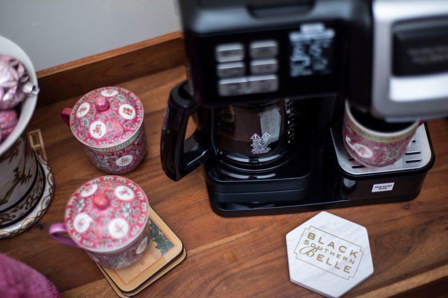 Looking for some preppy holiday fun? Why not create a Christmas coffee bar? We have partnered with Hamilton Beach Flexbrew Coffee to give you the tools you need to get started with your holiday brewing. As a new mom, my life literally runs on coffee. If you see me, you see coffee and my new baby but that doesn’t mean I can’t do it in style. I put together my love of coffee and Christmas to create some preppy holiday fun. Today, I am sharing my Christmas Coffee Bar Essentials so that you can plow through your holiday to-do list in style.