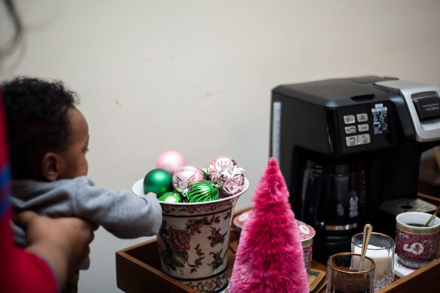 I love using unique holiday mugs and a great item to pick up at your local vintage or thrift store. I found these chinoiserie tea cups that now serve as the perfect coffee mugs since they are covered and I have an active baby who likes to explore anything he can get his hands on, even my coffe.