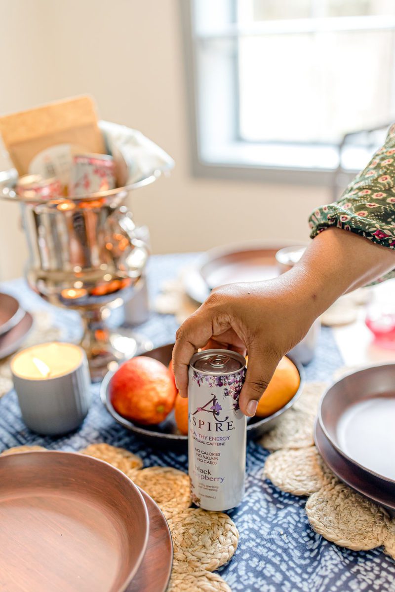 My days are filled with chasing toddlers and following up with clients with not much sleep. #AD As I try to balance all of these things, I have made a ritual of taking fresh fruit and getting my morning caffeine and recently added ASPIRE Drinks from Sam’s Club to that routine, especially their delicious Black Raspberry flavor. These tasty drinks are made with women in mind by providing caffeine from a natural energy source. It prevents a crash which is so important when you have to keep your energy up with two toddlers, a household and a business to manage. I took some time to myself and did my favorite creative activity, which is setting my table and wanted to share it with you along with some of my thoughts on being a busy mom. What thoughts go through your mind when you take a little me-time while balancing it all? Here are some of my Tips for Finding Time and Energy as a Working Mom