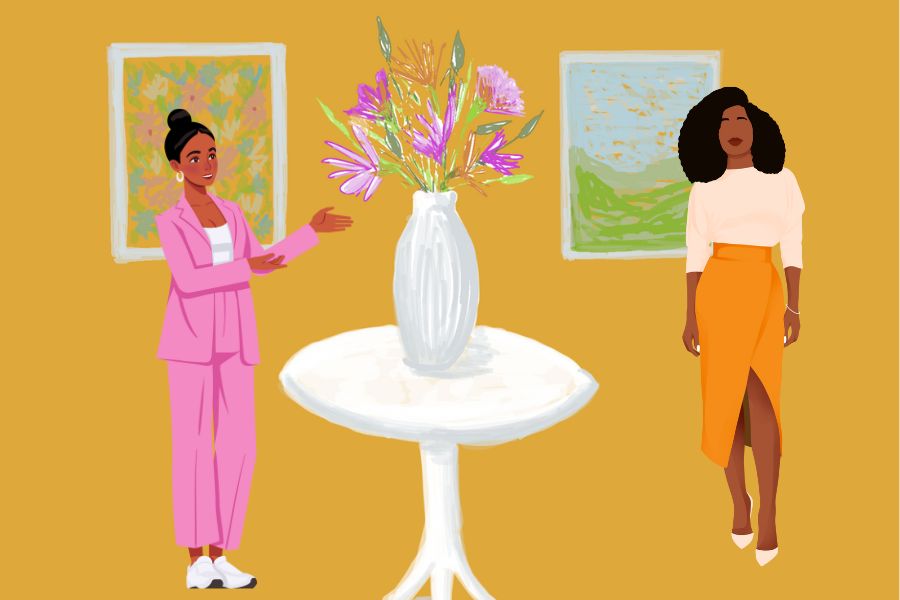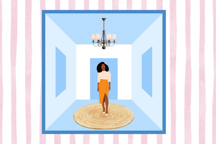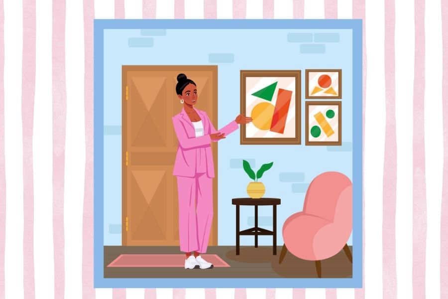 Think about the three P’s—Paint, plants, and patterns. Consider a glossy paint color that will reflect the natural light of the windows, or maybe even a great patterned wallpaper that makes a bold statement. Adding plants to any area of your home is great for your mental and physical health; consider letting some of the outside in with hanging terrariums, a tall snake plant, or even a small fiddle leaf fig tree. A plant will also add a pop of color, and you can put it in any type of fun vase/planter you find!