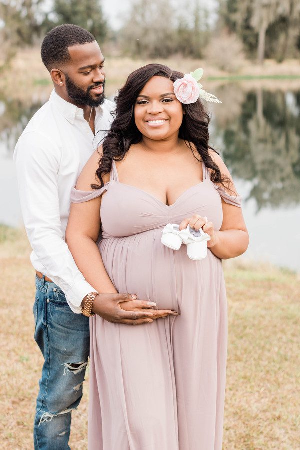 Today we are featuring a beautiful, Lakepark GA, maternity session. Jamere and Charles are so in love, it makes sense that they were high school sweethearts! They are expecting a beautiful baby girl and their hearts are beyond full. They bought along their baby girl’s first pair of shoes and paired it with mom’s soft gown to emphasize elegance in South Georgia. Explore this beautiful Countryside, Maternity Session in Lakepark, GA that we can’t get enough of. Check out the beautiful images below!