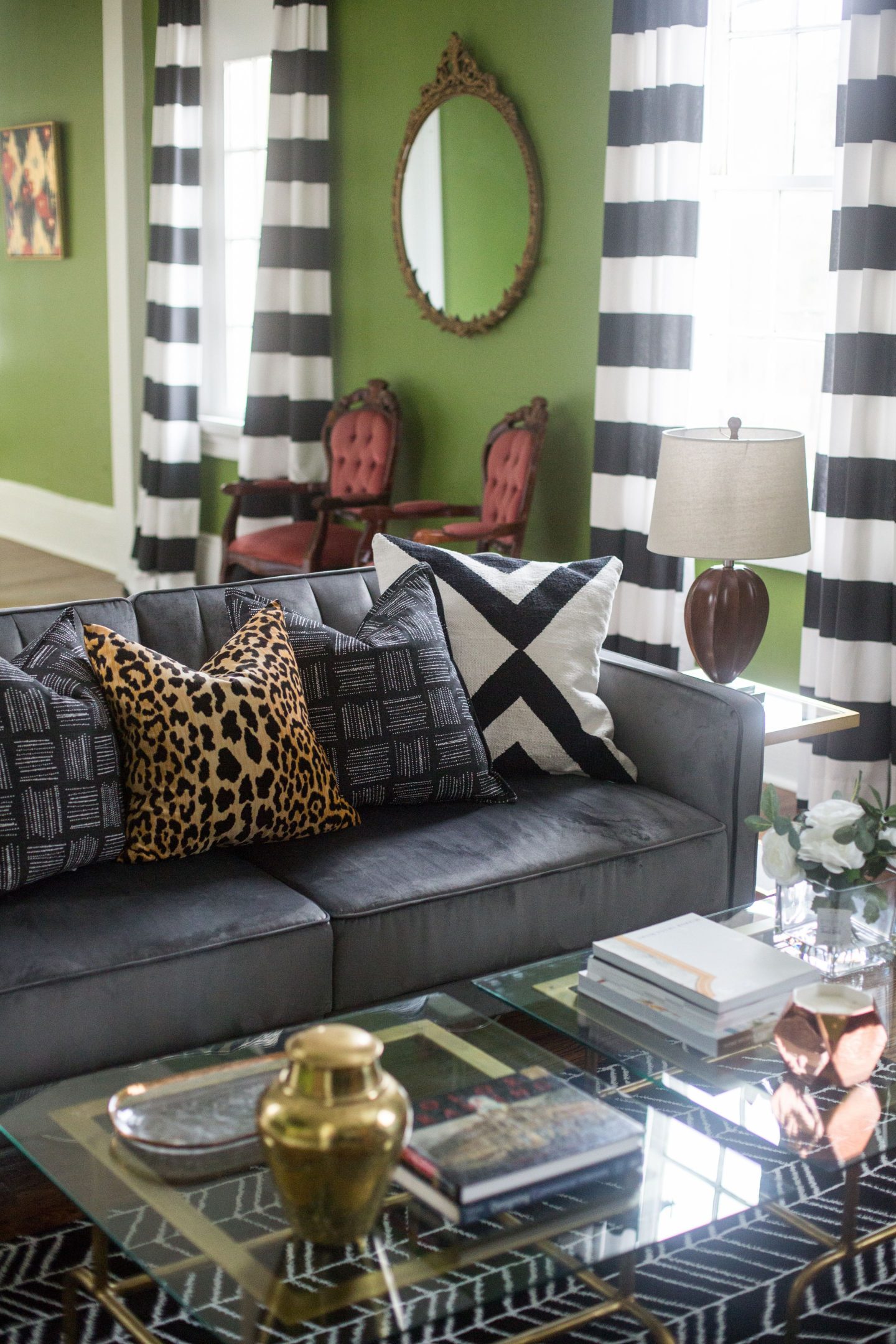 This couch is perfectly styled with the right amount of pattern and texture through various pillows. Perfect place to snuggle up and read a good book or drink a cocktail.