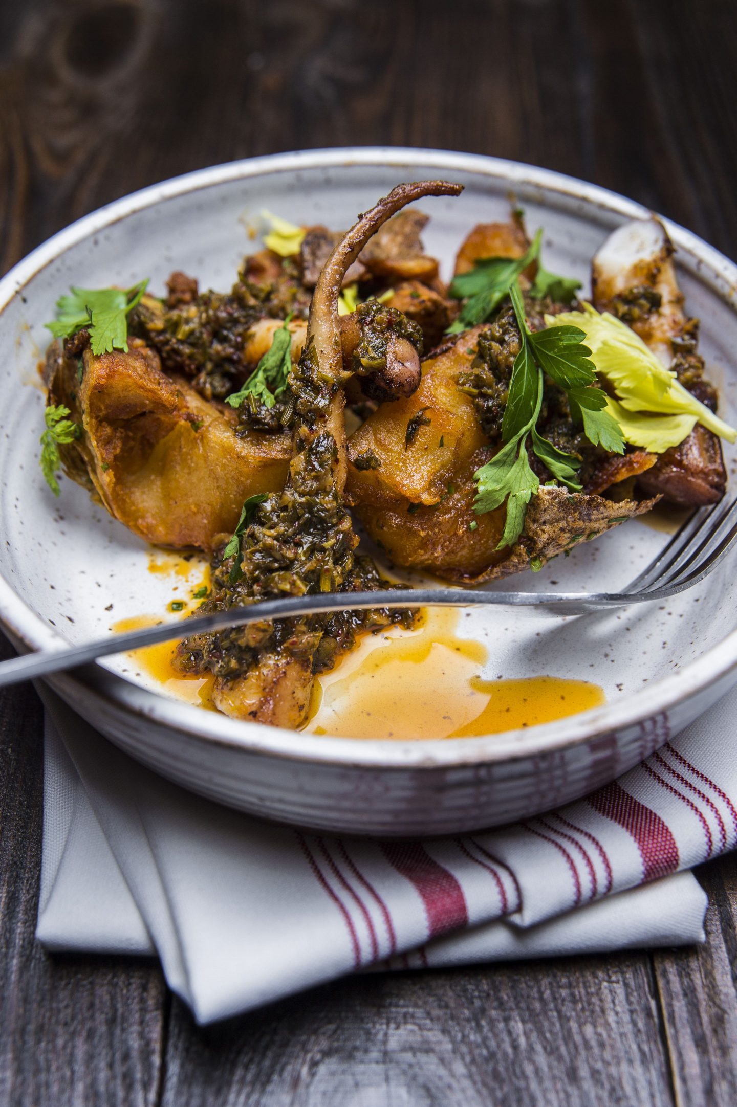 Feeling adventurous? The Octopus a la Plancha is served with housemade sausage, chickpeas, piquillo peppers, roasted garlic, onion soubise, caper, olives, lemon, saba and herbs.