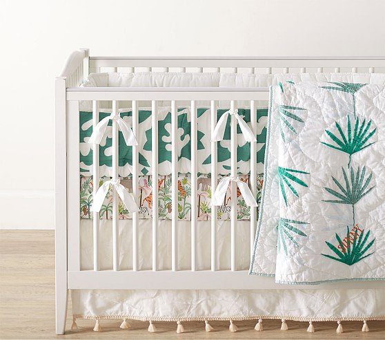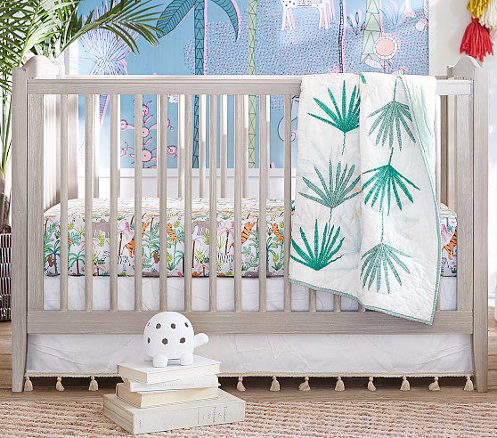 Justina Blakeney Jungalino Palm Baby Bedding: Boasting tropical palm trees and birds in vibrant colors, this bedding set will be the centerpiece of your little onea��s crib. From the wild mind behind JungalowA� comes a whimsical collection from designer, artist and author, Justina Blakeney. With bold colors and patterns, each piece brings Justinaa��s signature bohemian style to life.