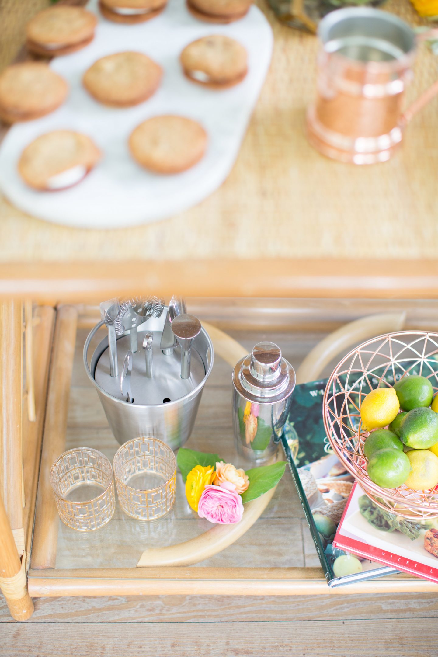 Dessert Station: Create a dessert station using a bar cart or favorite table with a few of your favorite pieces of serving ware. From cake plates to metal trays, mix and match for a layered look that will show off some of your favorite desserts. Encourage your guests to bring their own specialties or hire a chef to create a tasting menu for your friends. No matter what, have fun and don’t think about the calories.