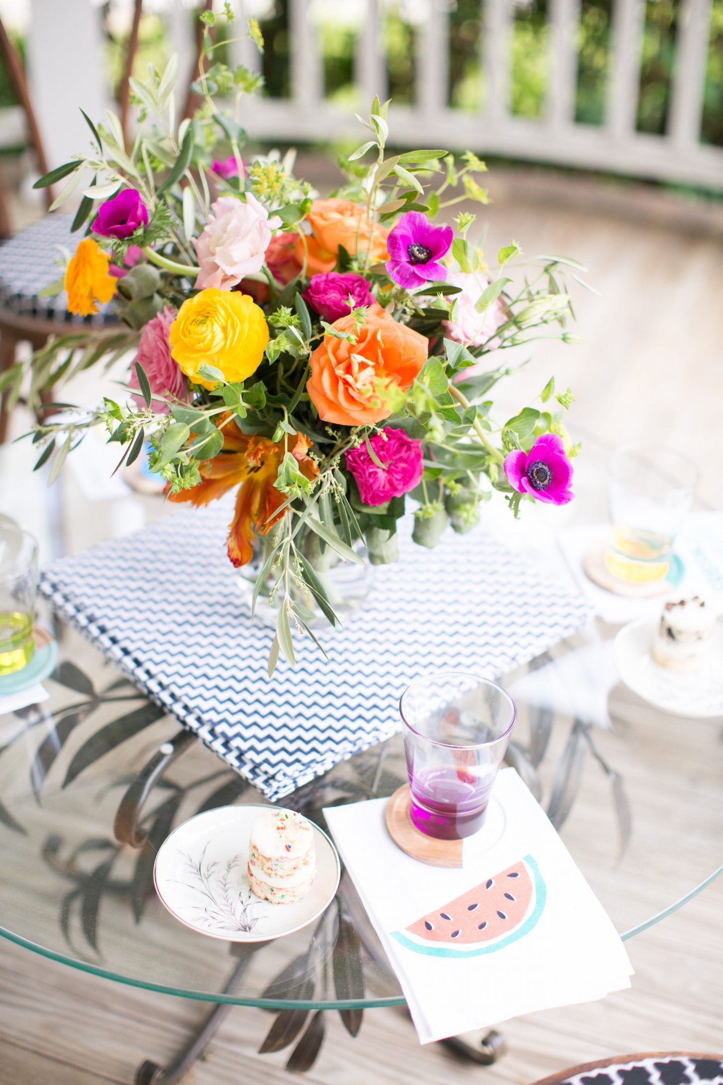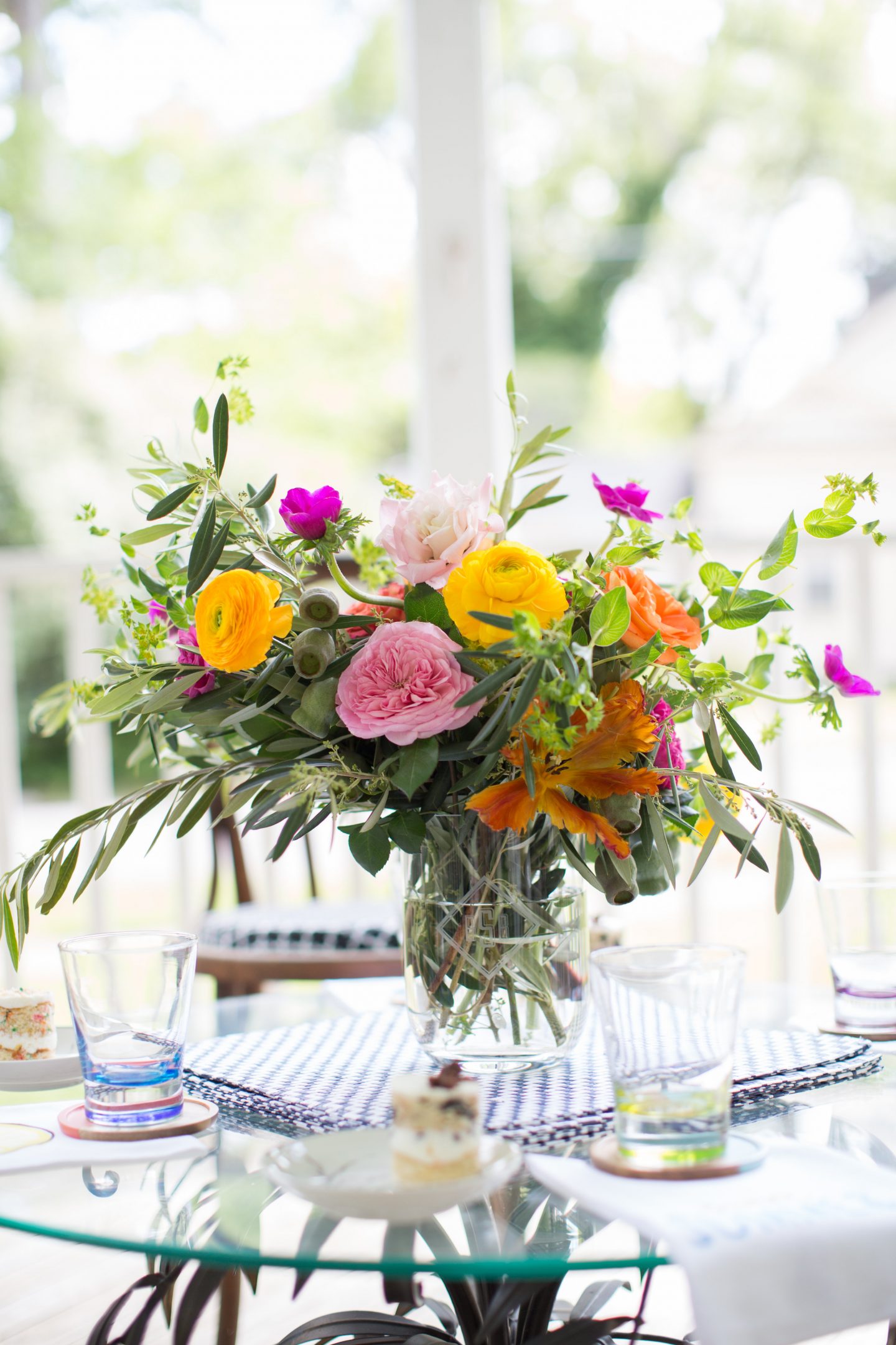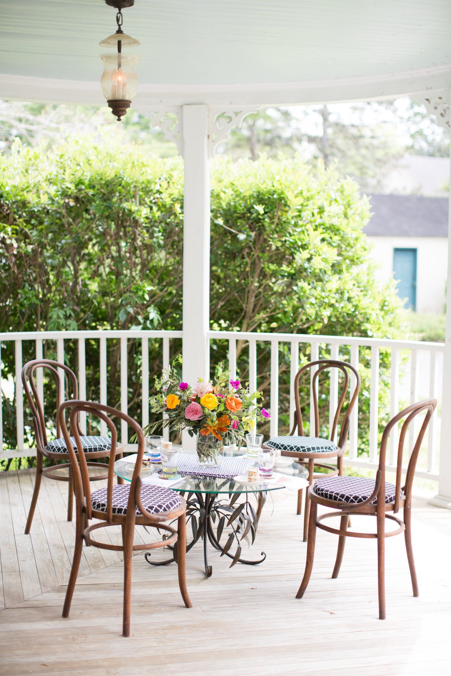 Florals: A beautiful floral centerpiece is a great way to catch the eye of your guests and encourage them to gather in a certain area. For a front porch party, be sure to incorporate lots of greenery and free-flowing flowers.