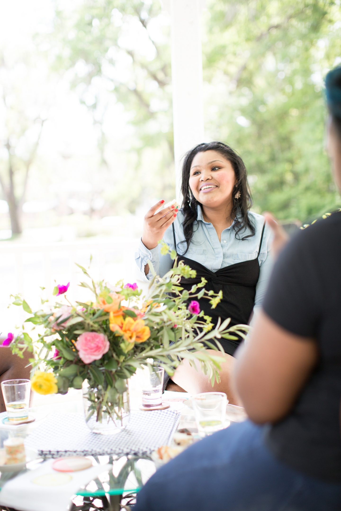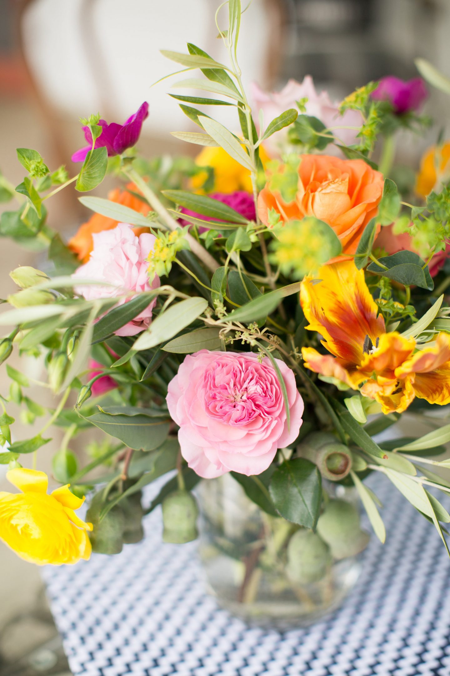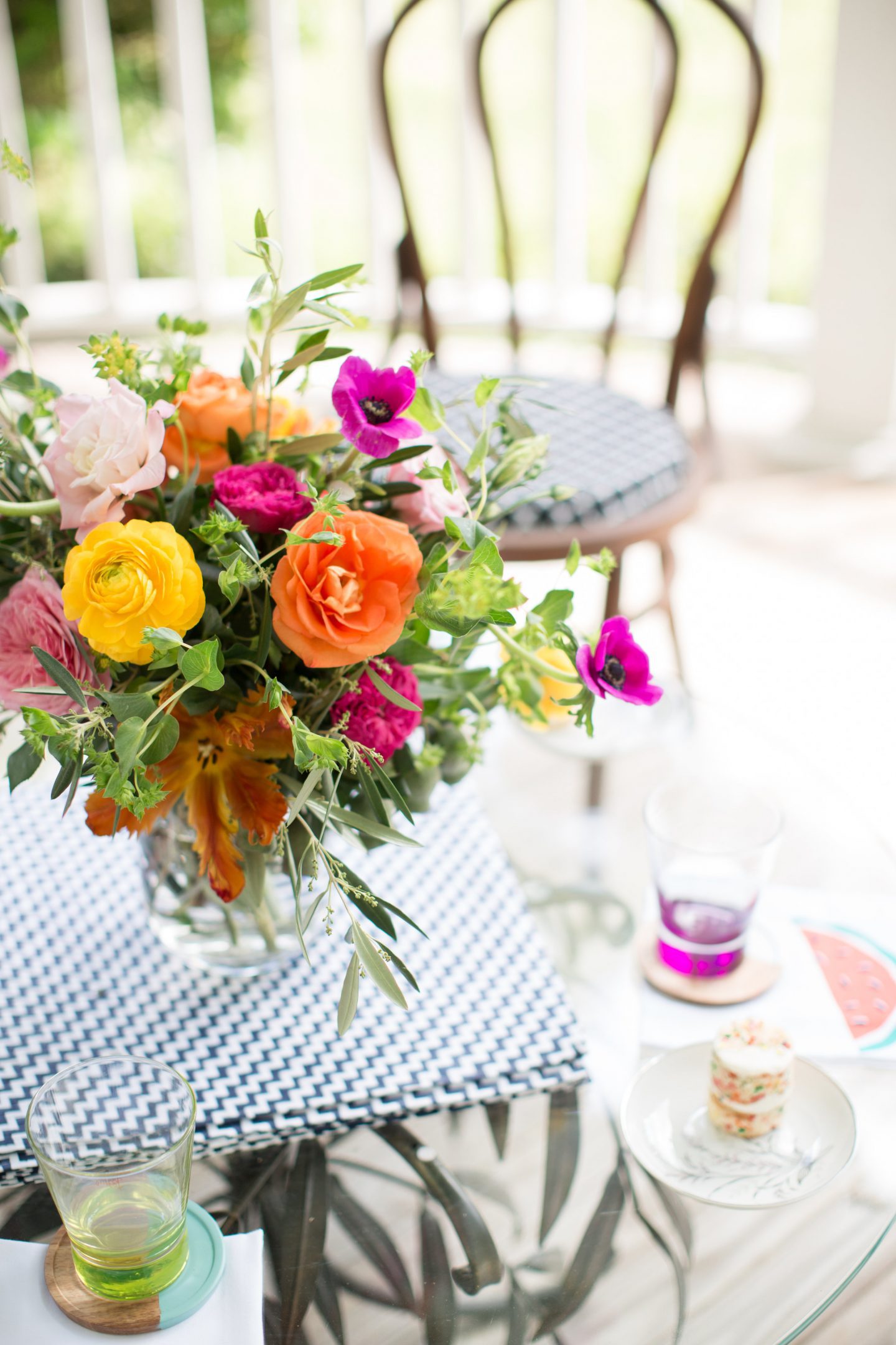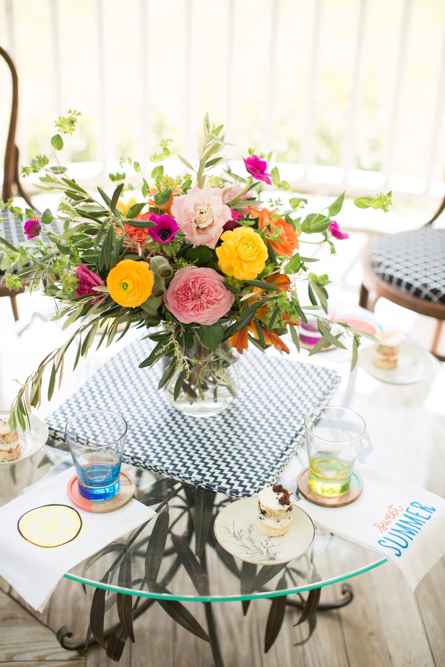 Florals: A beautiful floral centerpiece is a great way to catch the eye of your guests and encourage them to gather in a certain area. For a front porch party, be sure to incorporate lots of greenery and free-flowing flowers.