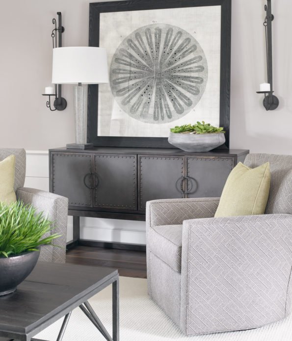 4. You can never go wrong with gray. These swivel chairs and beautiful metal sideboard are inspiration for a southern belle who loves some modern inspiration for her home.
