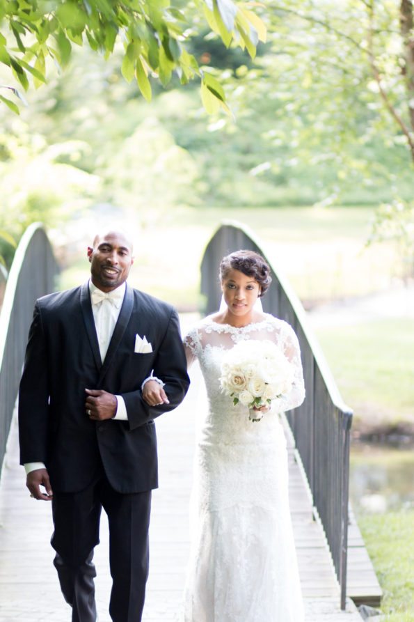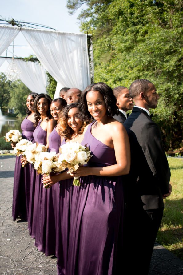 Ashlee and Rashad’s outdoor Fayetteville summer wedding was just as beautiful as their union. The beautiful outdoor scenery wasn’t the only thing that sold the show. Whether it was the sophisticated wedding arch adorned with a chandelier or the deep purple bridesmaids dresses– these nuptials exuded southern elegance. Read on to find out how this couple’s special day came together and made their love official.