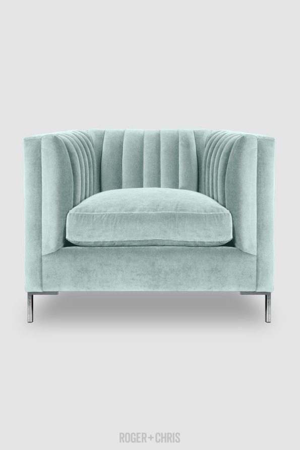 5) Channel tufted tub chair in Crypton Henry New Aqua velvet atA�Roger and Chris.com: This chair is a great accent piece for any gathering space. It is a beautiful color that will add a sense of peace and winter fun to ay home.
