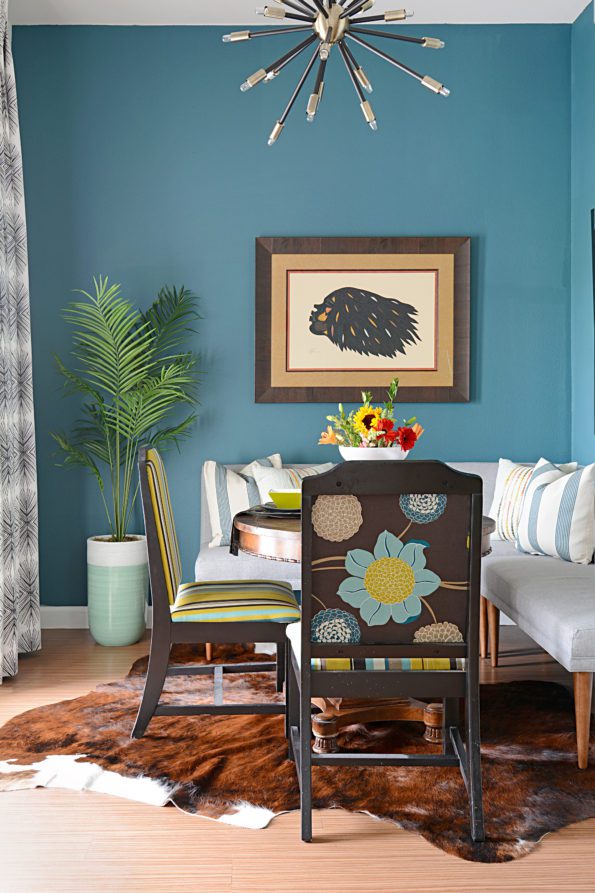 3)Make Every Inch Count: Our clienta��s high rise unit has an open concept floor plan, so the dining room could easily be seen from the kitchen and living room. We gave her stylish, usable space by adding a banquette and statement lighting to this space. Now her guests have a comfortable place to sit and enjoy drinks or dinner.
