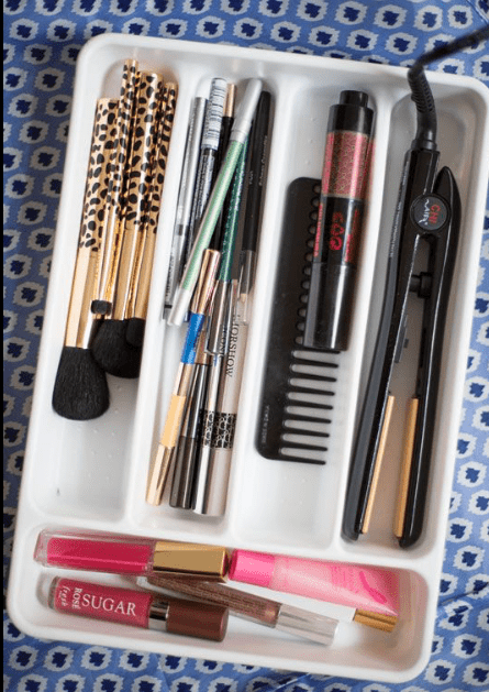 De-clutter your makeup and hair item drawers by using a kitchen utensil tray. This will keep items organized and separate. It also makes your items easily assessable for use.
