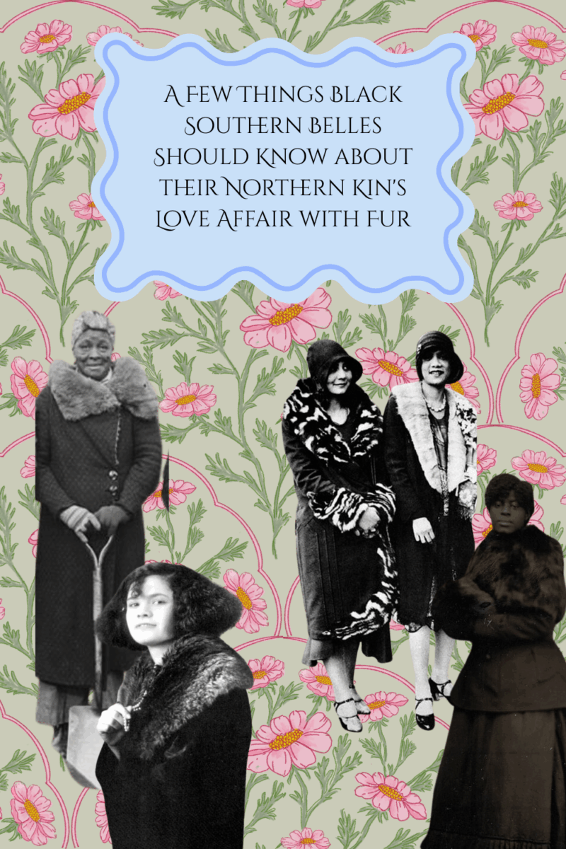 Some of our northern cousins and aunties (and uncles) – likely descendants of the Great Migration – are enamored with fur coats and accessories. All one needs to do is scour archival and vintage photos on Instagram or in a museum’s digital collections to see how fur coats were an important part of many Black women’s wardrobe choices, especially in the North. First ladies of churches, club women, professional and non-professional women, women who liked the nightlife, and some of our beloved Black divas in entertainment embraced the glamour, stylishness and upward mobility conveyed in a fur coat, jacket, stole, muffler and hat.