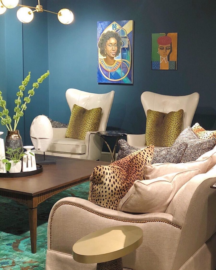 Can’t get enough of the pieces from the collection. The New Heirlooms Collection debuted at High Point Market, with luxury furniture retailer Alden Parkes as part of their “Showhouse In A Showroom” event. AphroChic lighting, wallpaper, juju hats and candles was featured in two rooms that the design firm created for the event. Here are some beautiful images from the showroom below and be sure to check out the AphroChic home collection here: https://www.aphrochic.com/shop/