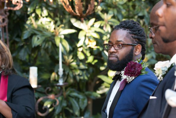We included contemporary southern decor throughout our lush ceremony space with oversized balloons and glowing string lights that lit up our intimate garden. We incorporated natural greenery, tons of old fashioned lace, and antique gold wherever we could for a soft, sweet look.