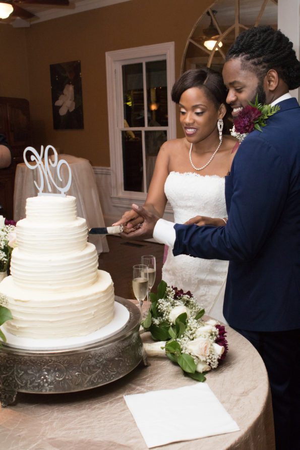 We wanted to include southern cuisine into our wedding menu so we served charleston style shrimp and grits (My favorite!) along with rosemary chicken, rice pilaf, and parmesan green beans. Our wedding cake was also true to our southern roots! We opted for old fashioned, vanilla and red velvet cake (Leroy’s favorite) with made from scratch cream cheese frosting.