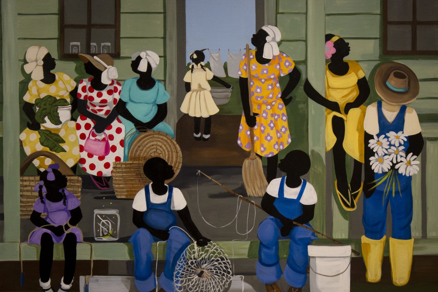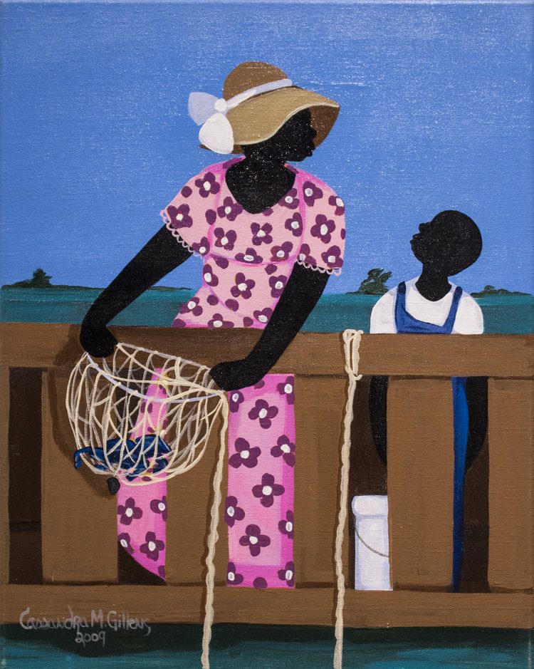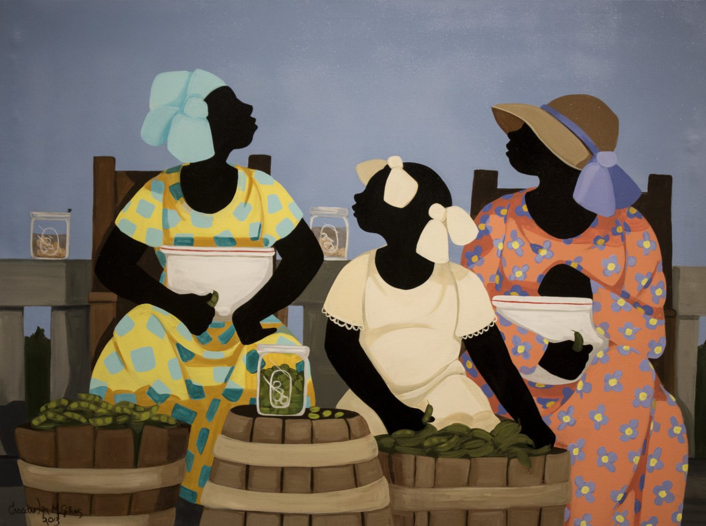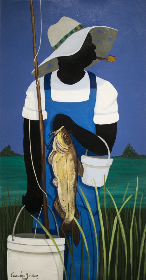 According to the exhibit website: “The artists shown here draw on their strong Gullah Geechee history depicting the life and heritage of their people. Tison and Gillens use bold colors for large close-up paintings inspired by real life scenes either passed down in verbal tradition from generation to generation or experienced first-hand by the artist themselves.