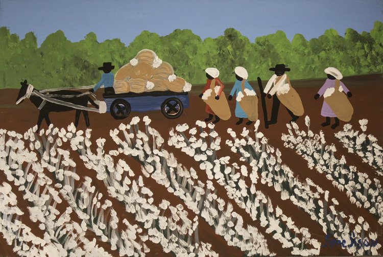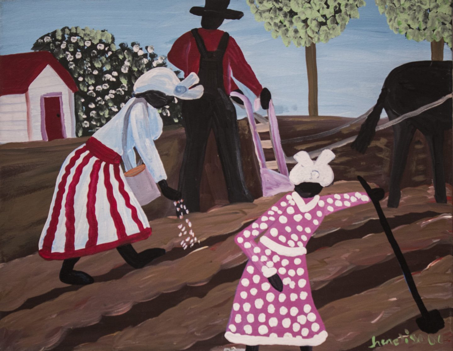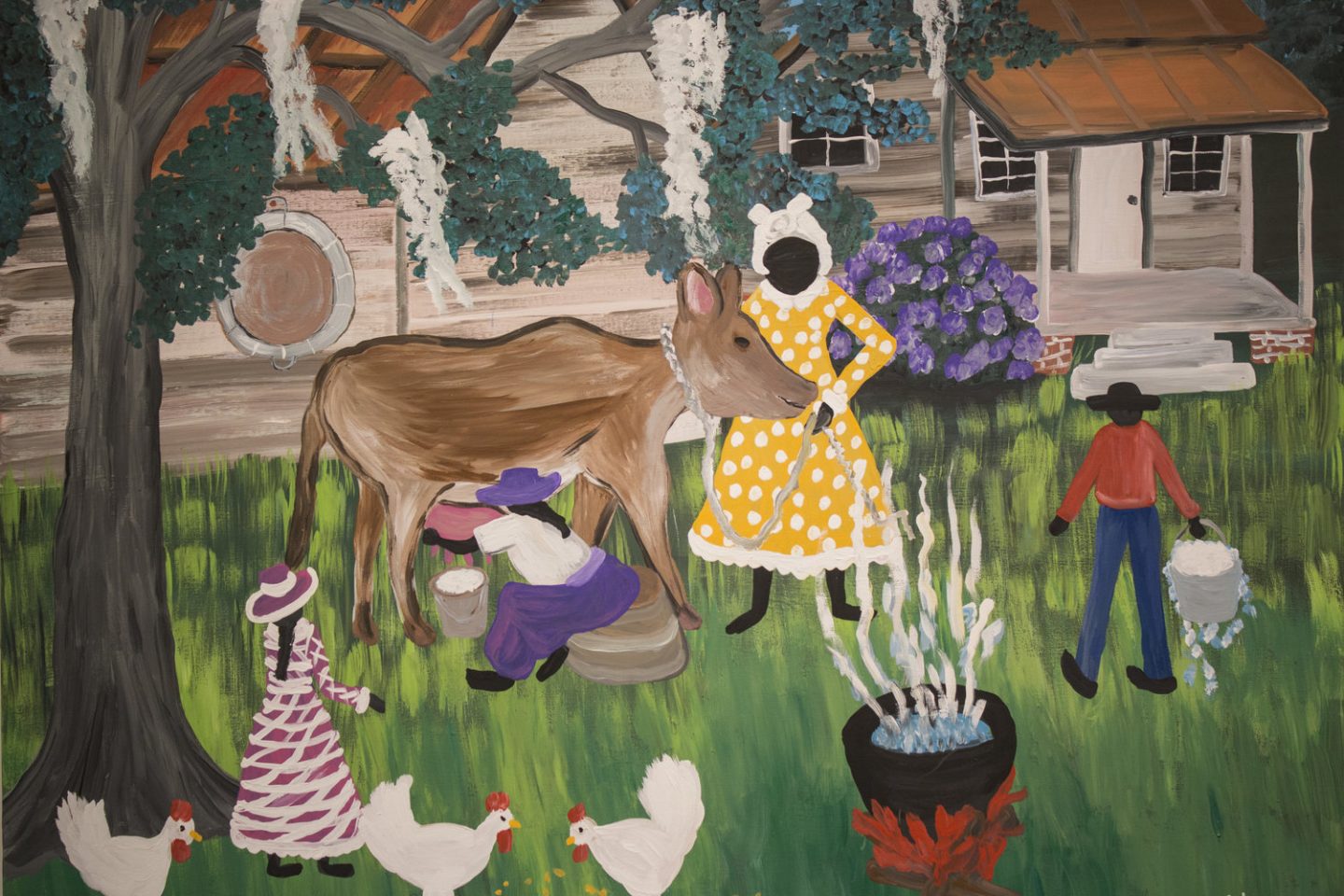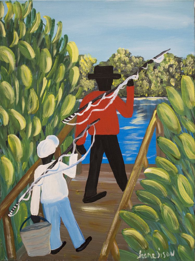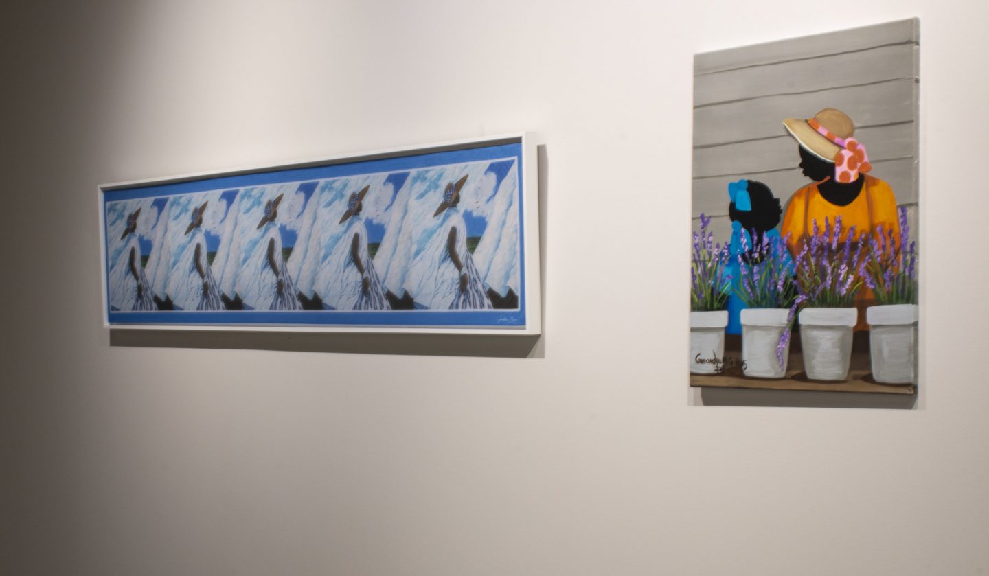 According to the exhibit website: “The artists shown here draw on their strong Gullah Geechee history depicting the life and heritage of their people. Tison and Gillens use bold colors for large close-up paintings inspired by real life scenes either passed down in verbal tradition from generation to generation or experienced first-hand by the artist themselves.