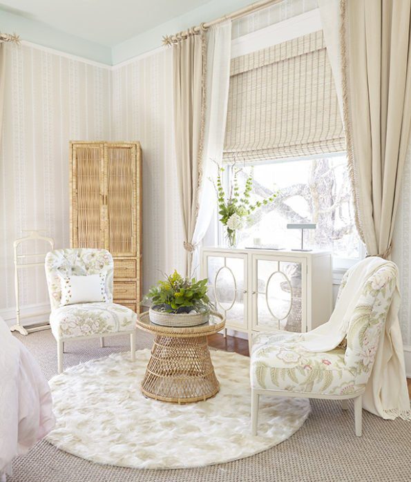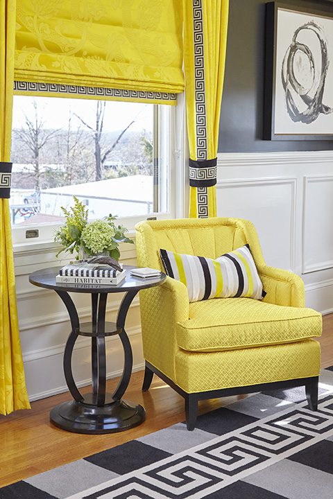 We adore this pop of color and greek key rug! Nothing better than a beautiful reading nook when you are on vacation!