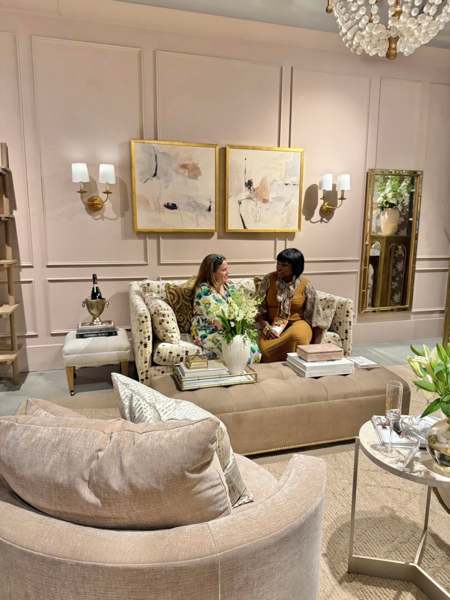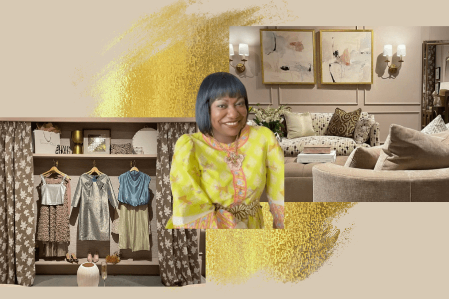 HBCU Alum, Cheryl Luckett’s “Blush and Bashful Vignette” for Rowe Furniture is a masterpiece that beautifully merges the worlds of florals and fashion. This living room and closet setup is a testament to the power of design, where every element echoes sophistication and charm.