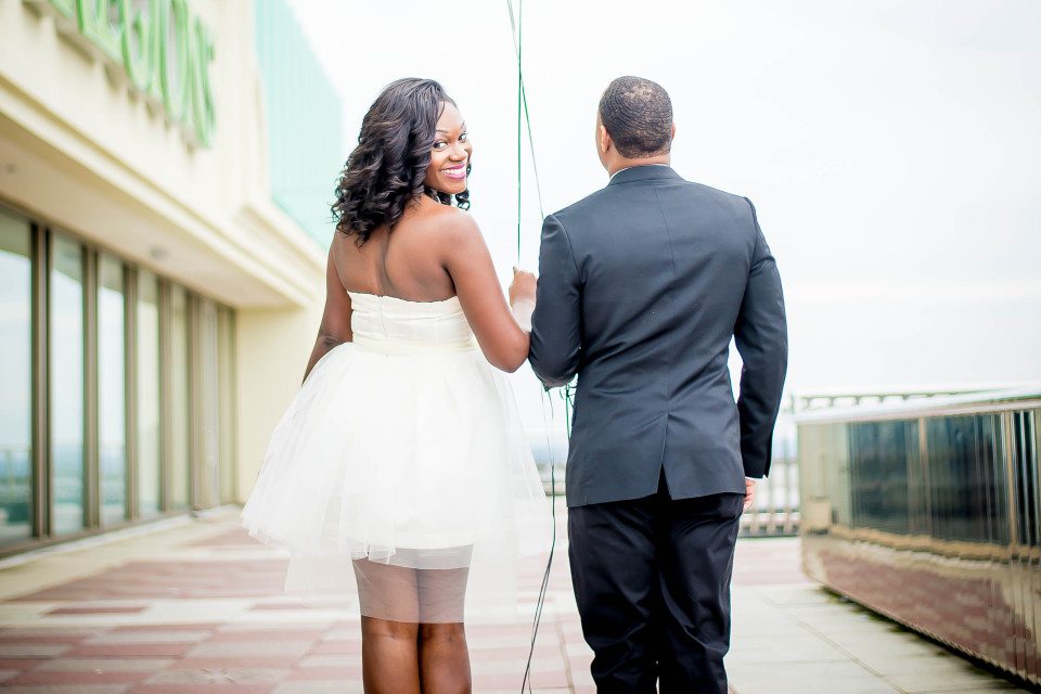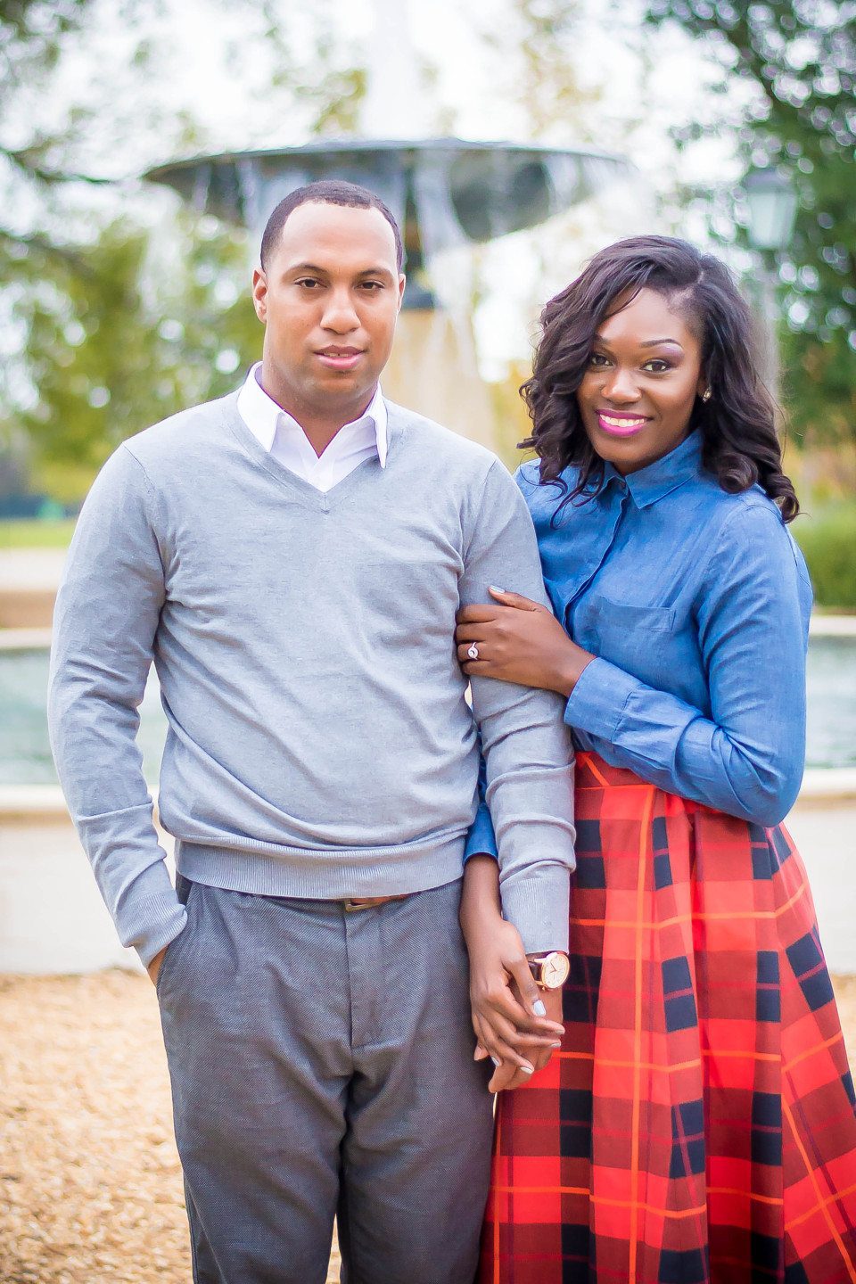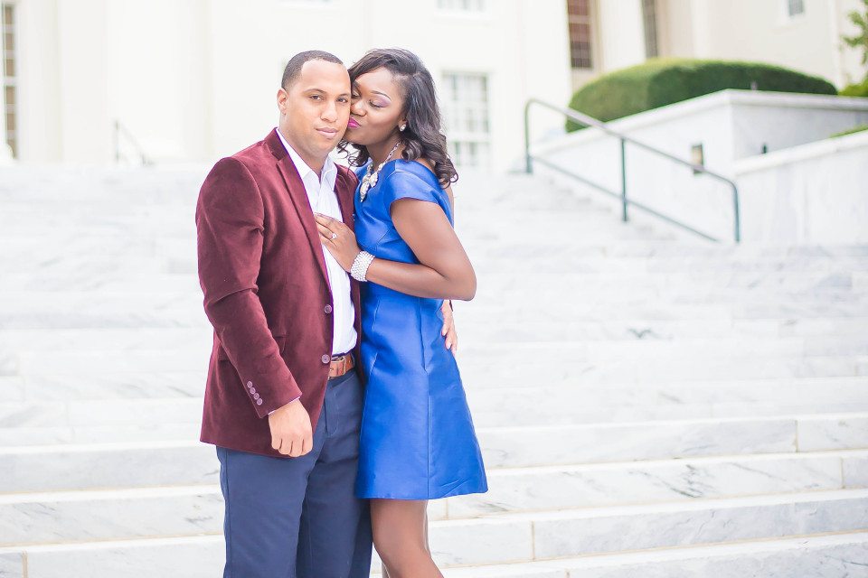 I loved spending time with Raynard while taking the pictures. The week before we took the pictures, we had very busy work schedules and it was one of the first Sundays I had off from work, since the proposal. I enjoyed his company, the laughter and jokes, and just being us. Since our wedding is a black tie event, we really wanted to look nice, and try something different from other pictures of couples we’d seen. And since we are both from the South, it’s all about Southern Glam!