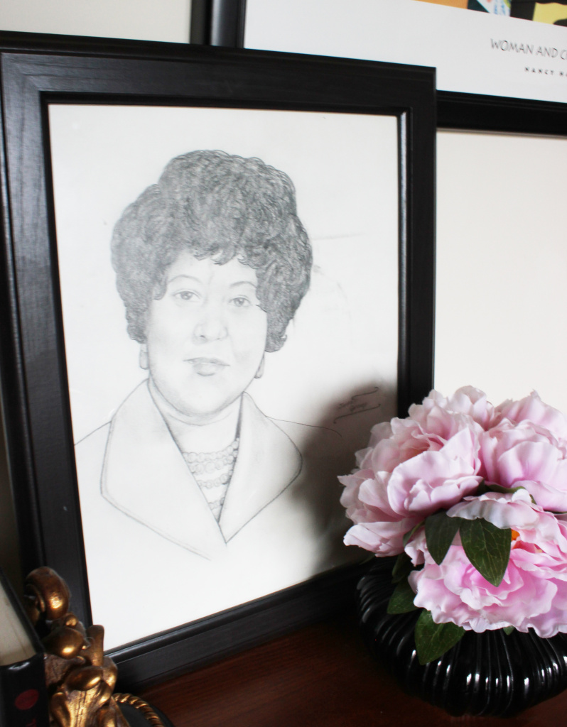 My most treasured piece of art is a drawing of my mom.  My dad was in the hospital and before he passed away he had another patient he had met create a pencil drawing of my mom.  I recently found someone her in Atlanta that creates pencil drawings and had them create one of me.