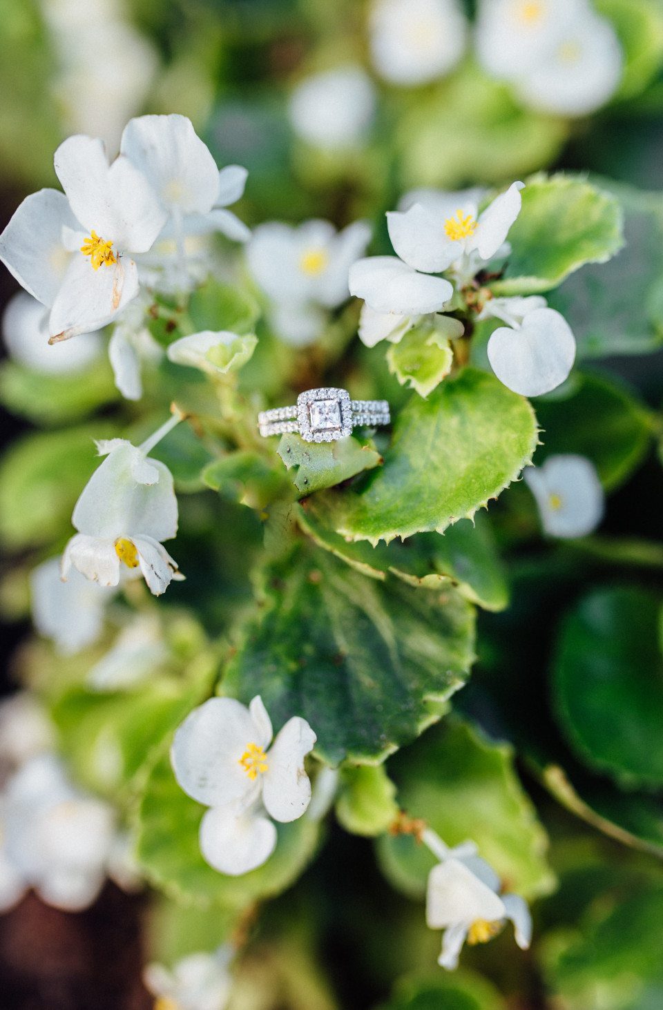 On my birthday, Matt took me to Hopeland gardens, where we spent a lot of time during college. As we starting waking around the garden, Matt took me to my favorite spot between two oak trees and my two best friends came out to surprise me. When I turned around, Matt was on his knee with a beautiful ring.