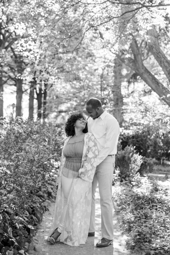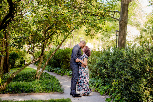 Well, we always take a trip to NYC every Christmas because I am aA�true tourist no matter how often we visit the city and can’t deny the beauty that time of year.A�This time, heA�decided to plan a weekend that would leave meA�guessing! We spent the day running around the city with Joab’s sister shopping before heading back to the hotel for candle lit dinner. I must’ve suspected something special was going to happen that night because weA�both sat at the dinner table starring at each other,A�nervously laughing, and neither of us could eat. After some time went by and Joab realized we both were full of butterflies, he says lets go up on the rooftop to the lounge. So, we head upstairs with the city light gleaming and the cold airA�on our breathe still nervous. I literally ask ” what are you going to do, go on ” because I have a feeling. Joab then reaches in his pocket and I gasp for air as he’s telling me how much he loves me then he scoots like he’s getting on one knee…them pulls out a pack of gum!! We both were dying laughing and I was so caught up in the laughter that when I stopped– he was on a bended knee asking me those 4 magical words!! We headed back to our room to celebrate soon after, only to walk into the room fully showered with rose petals and flowers with the song we always said we’d dance to playing in the background. NeedlessA�to say,A�we were both in tears holding each other and slow dancing for Lord knows how long!
