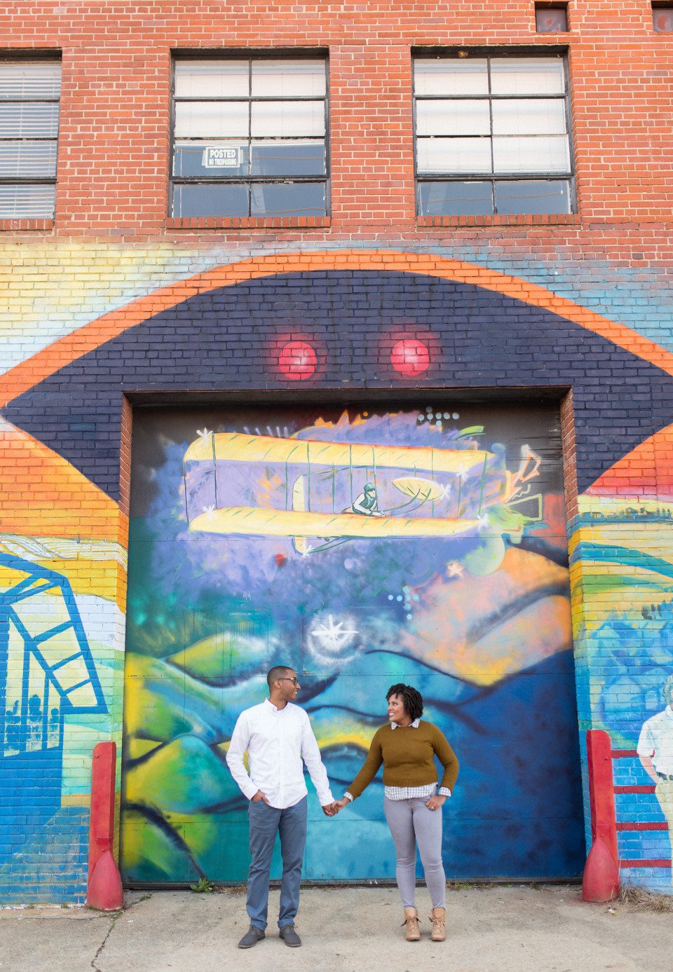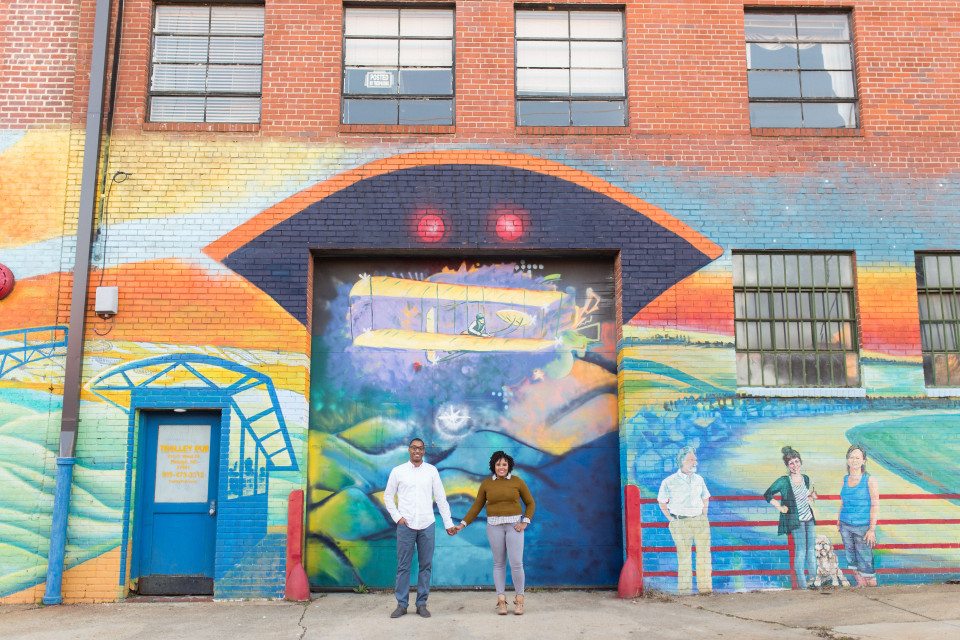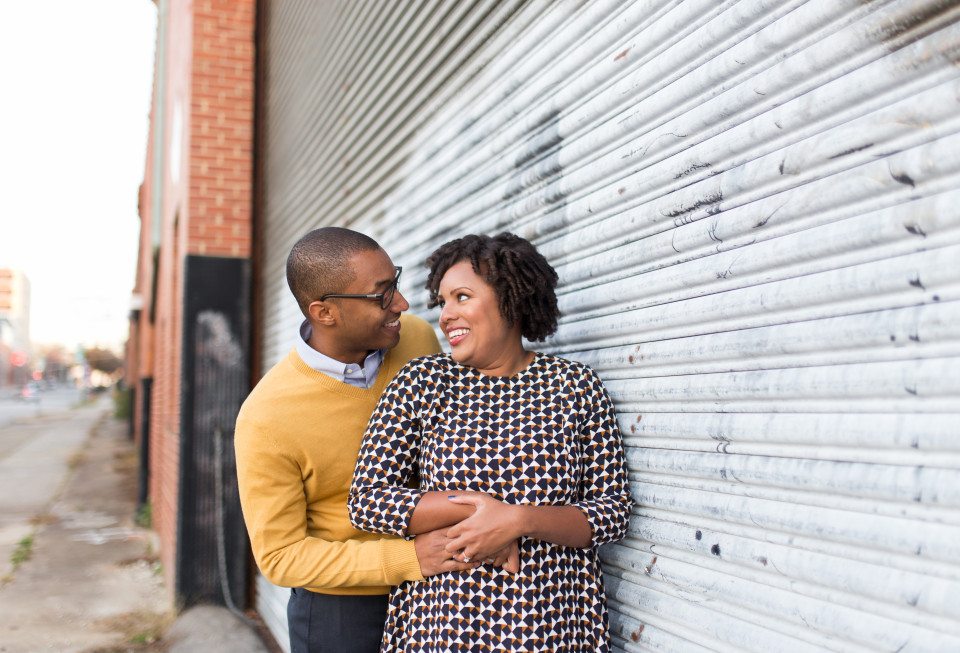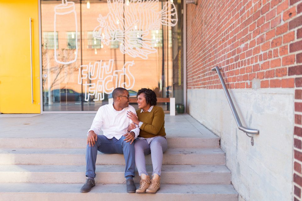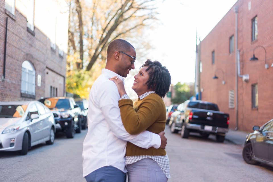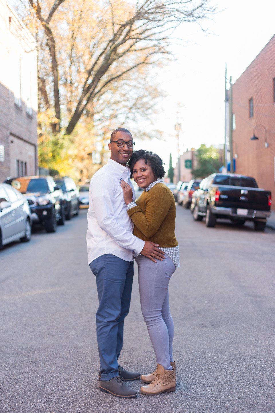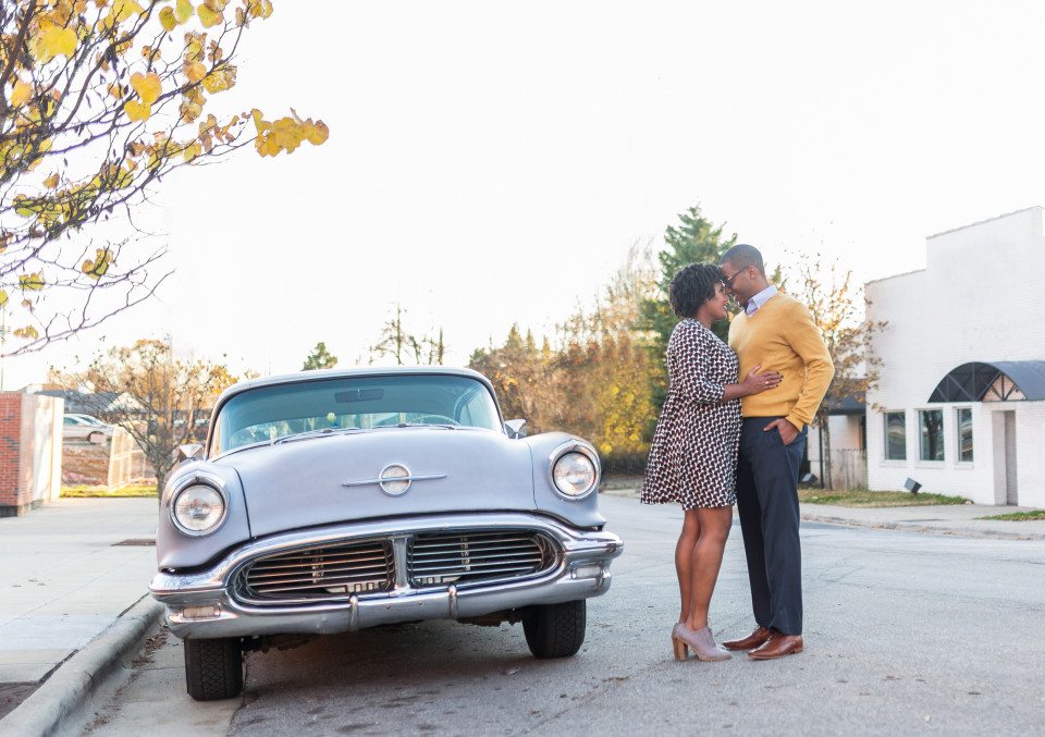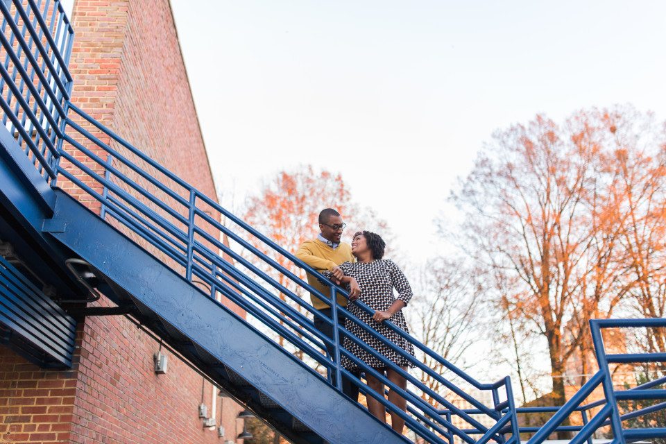 This engagement shoot embodies warm colors and the classic feel of downtown Raleigh. With preppy clothes that exude a vintage but modern style, this couple fashionably conveys their southern love.