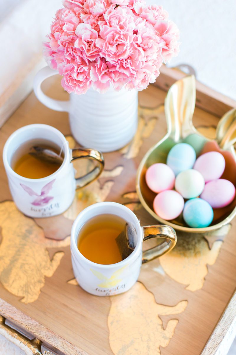 Coffee For Two: A beautiful and cost effective coffee mug is a great way to add some Easter style to your brunch. This one is too cute for words and looks great with the gold handle and hand scripted font.
