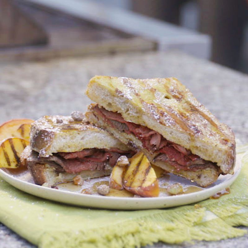 French Toast Monte Cristo & Grilled Peaches with Toasted Pistachios