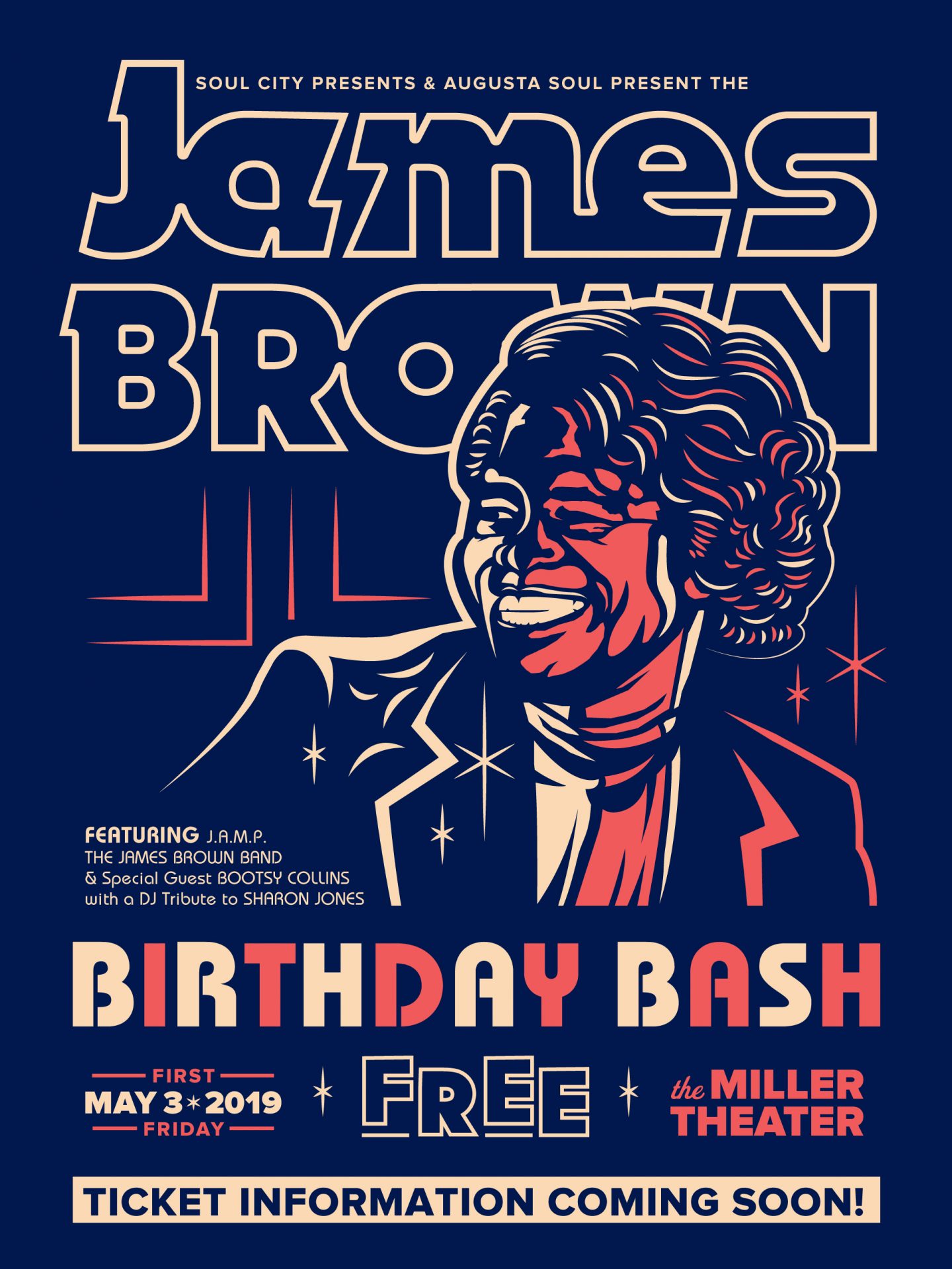 This year in celebration of soul icon, James Brown, the historic Miller Theater (the second largest theater behind Atlanta’s Fox Theatre) will be hosting a FREE James Brown Birthday Bash at the theater on Friday, May 3, 2019. That’s right… FREE. The J.A.M.P. band will be featured along with the James Brown Band, special guest Bootsy Collins and a DJ Tribute to Sharon Jones (her birthday is May 4).