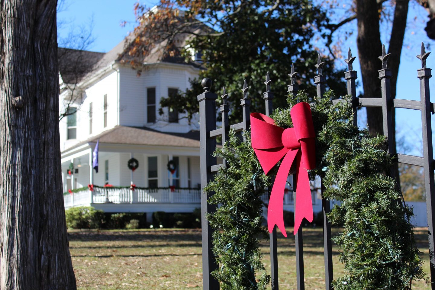 HBCU Holiday Tour: Wiley CollegeNothing like a front porch in the South, especially during the holidays. We adore the classic decor in this foyer. Can never go wrong with a traditional chandelier.We love seeing the Wiley College flags waving!Christmas wreaths are a great way to dress up a gate and these are as classic as they come. Rocking chairs, wicker couches and original architecture always a winner for holiday settings. This staircase is stunning and paired with the grand piano is the perfect statement room for a holiday party.You must have your holiday tree and this one is perfectly placed in front of the window.We love this ode to the nation’s capitol.No southern holiday home is complete without a poinsettia. This original mantle looks stunning dolled up in red and white for the holidays.You can never go wrong placing a poinsettia to accent the gallery walls.This wraparound porch is a serious stunner.A classic red ribbon is always a perfect touch for a holiday wreath.