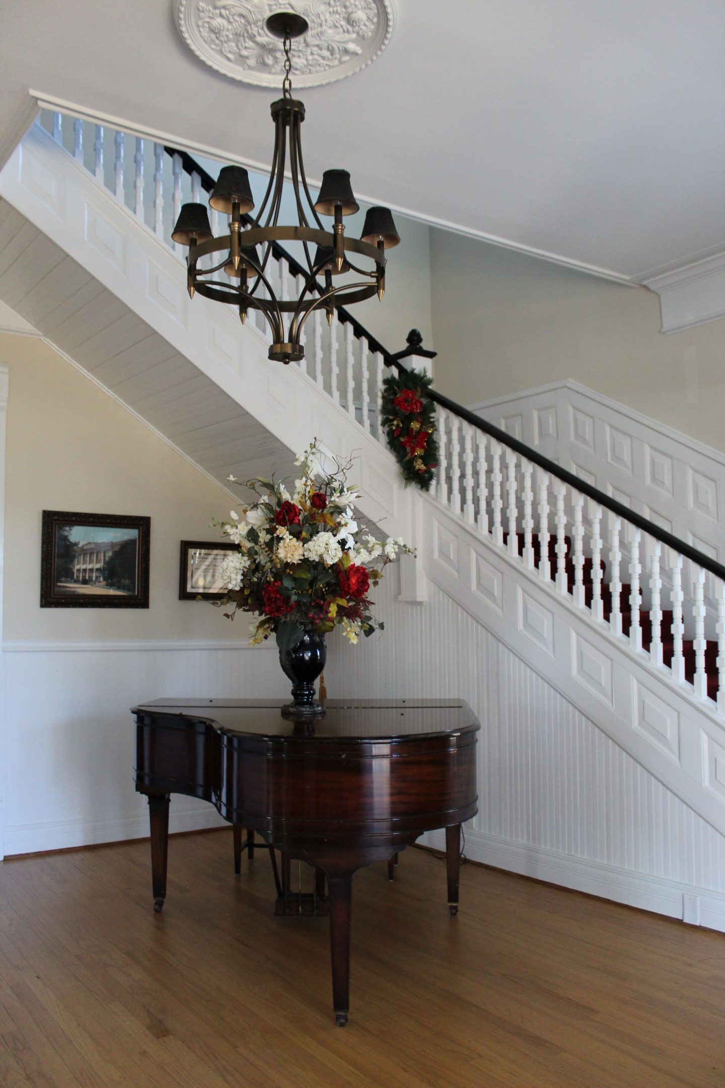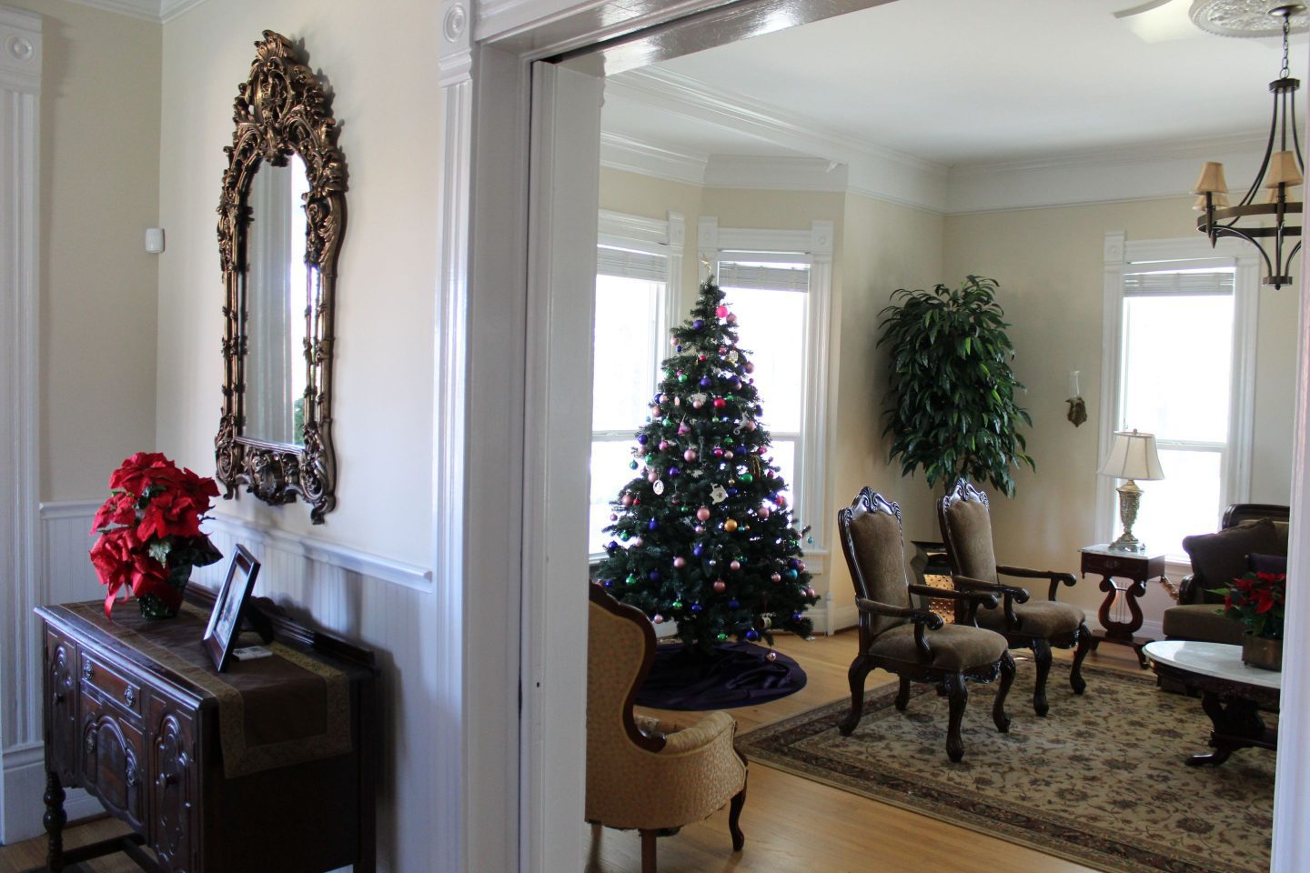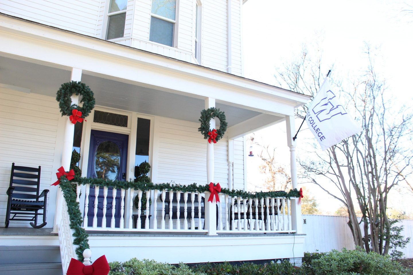 #2: As someone who appreciates historic buildings, I really enjoyed teaming up with Wiley staff to decorate the President’s Home for the holidays. Built in 1903 by students, the architectural integrity remains largely intact which made decorating the home particularly enjoyable. By sticking to a minimalist design approach, we chose to highlight the home’s architecture accents like the original mantles, crown molding, pockets doors and the incredible wrap around porch.