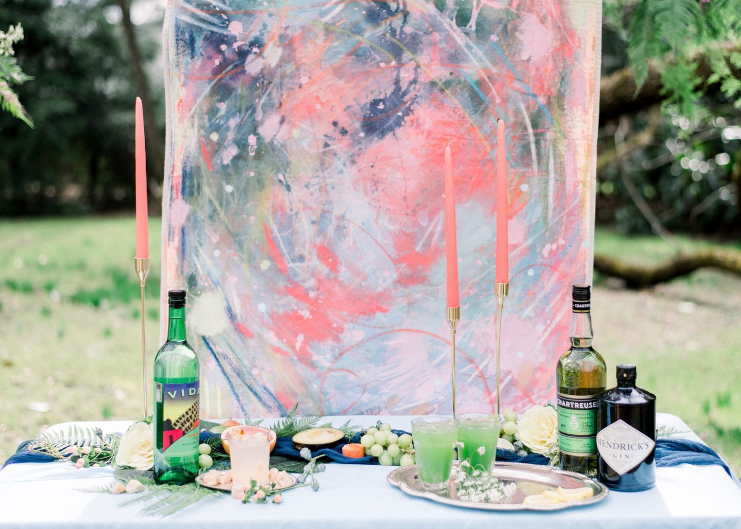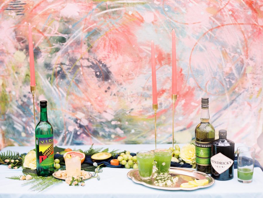 We love the gorgeous backdrop of this historic in dripped in mint and emerald green. Perfect design aesthetic for a casual garden party or dinner party.
