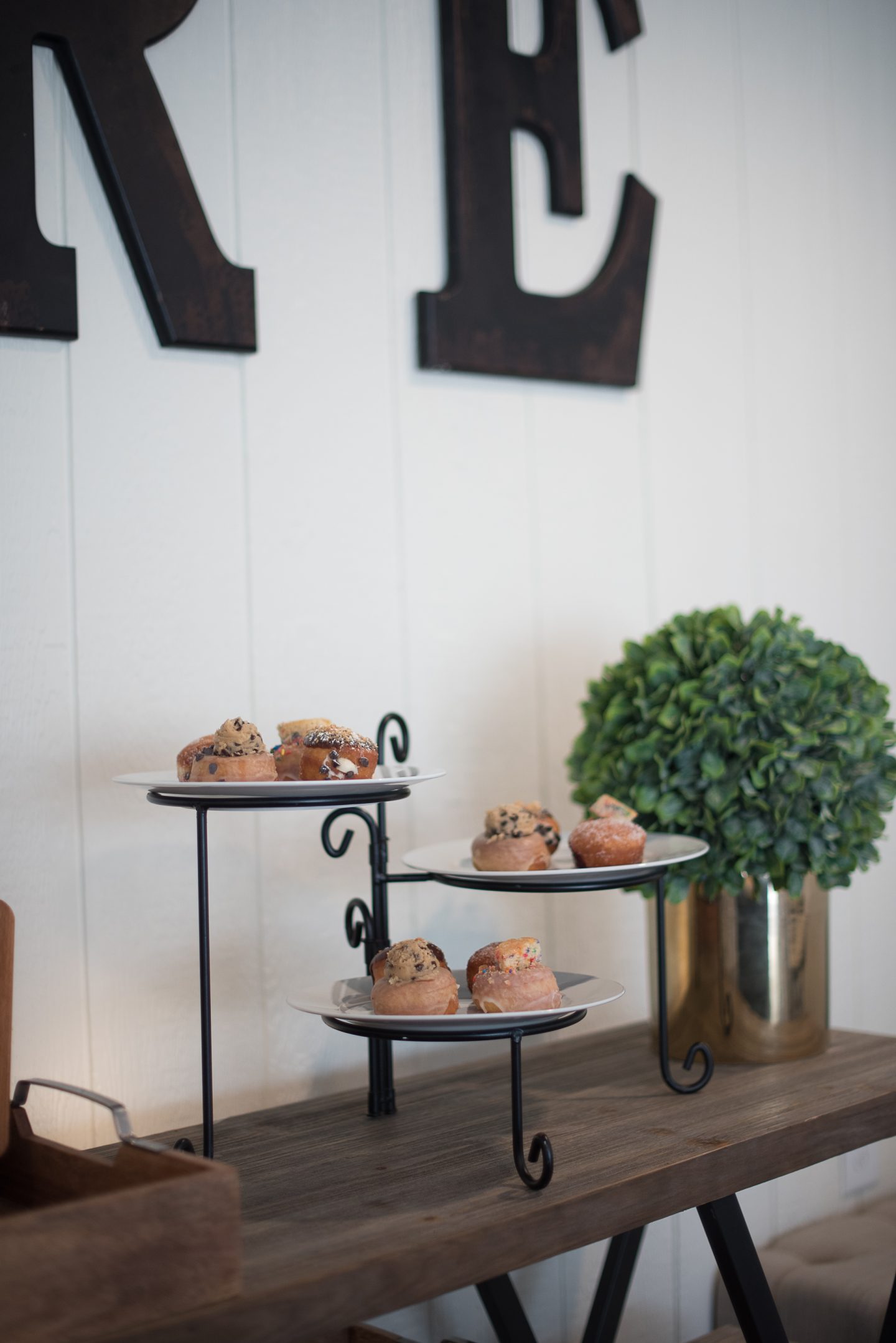 Display desserts and small dishes on tiered trays for a layered look on your buffet table.