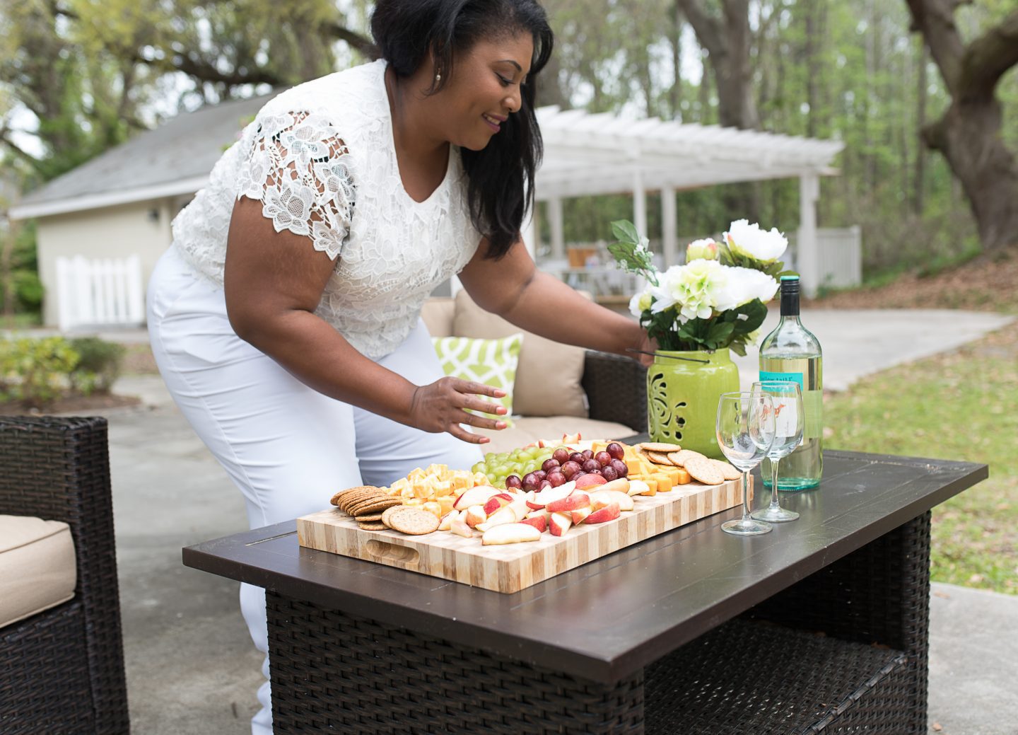Be sure to have cheese boards and fruit trays out for display for your guests to enjoy while you finish preparing the final meal.