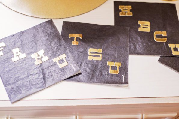 Black Southern Belle women love a well decorated party even if we only have a few minutes to get it together. We also love monogramming and our alma maters. If you are looking to add some HBCU pride to your NYE Eve decor, we suggest purchasing a few packs of stickers, white labels and gel pens to add the initials of your alma mater as well as those of your guests. For our party, we added some HBCU fun on our champagne bottle, party favor bags and napkins. If you dona��t have time to get stickers, you can print these letters off on your computer or use your penmanship skills or even wait for your guests to arrive and create an HBCU decorating contest where the best decor gets a bottle of champagne to take home.