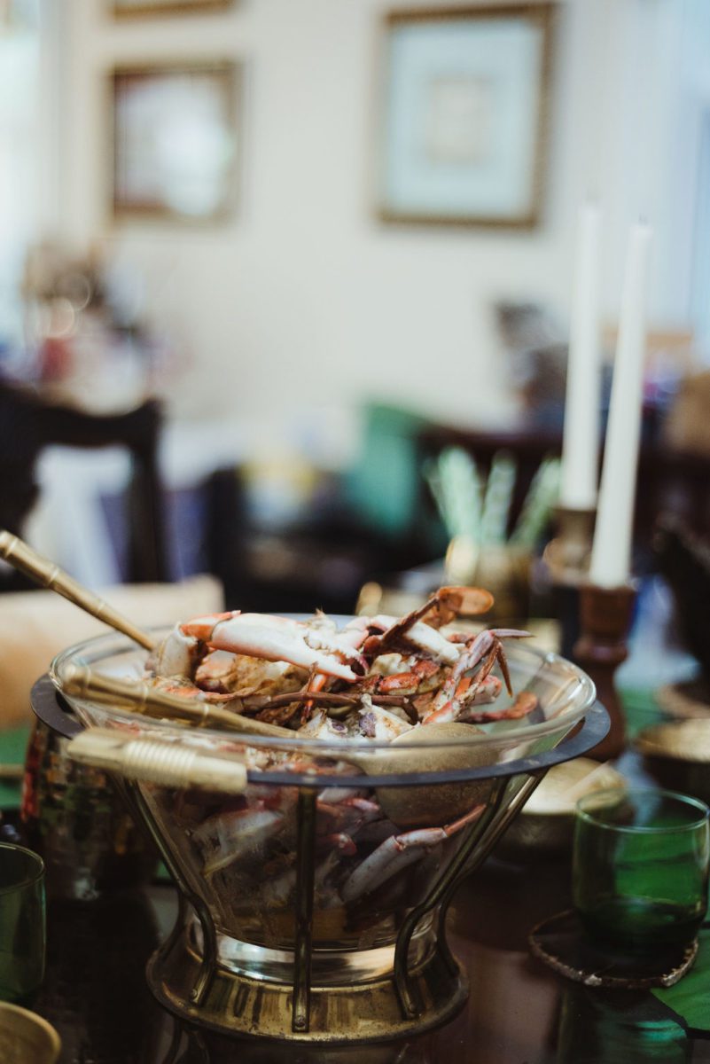 I am obsessed with this vintage bowl with a brass base. It is a perfect dish to carry crabs or seafood for an outdoor dinner party.