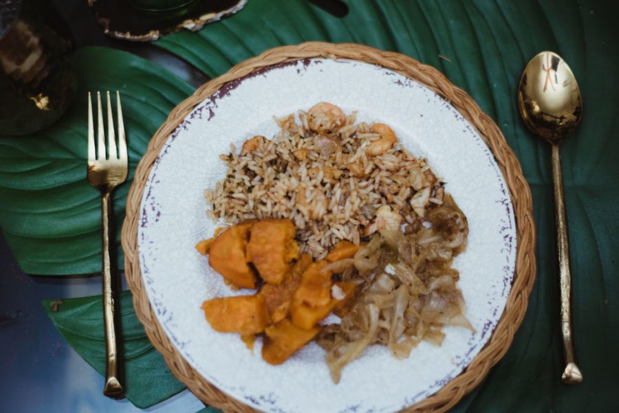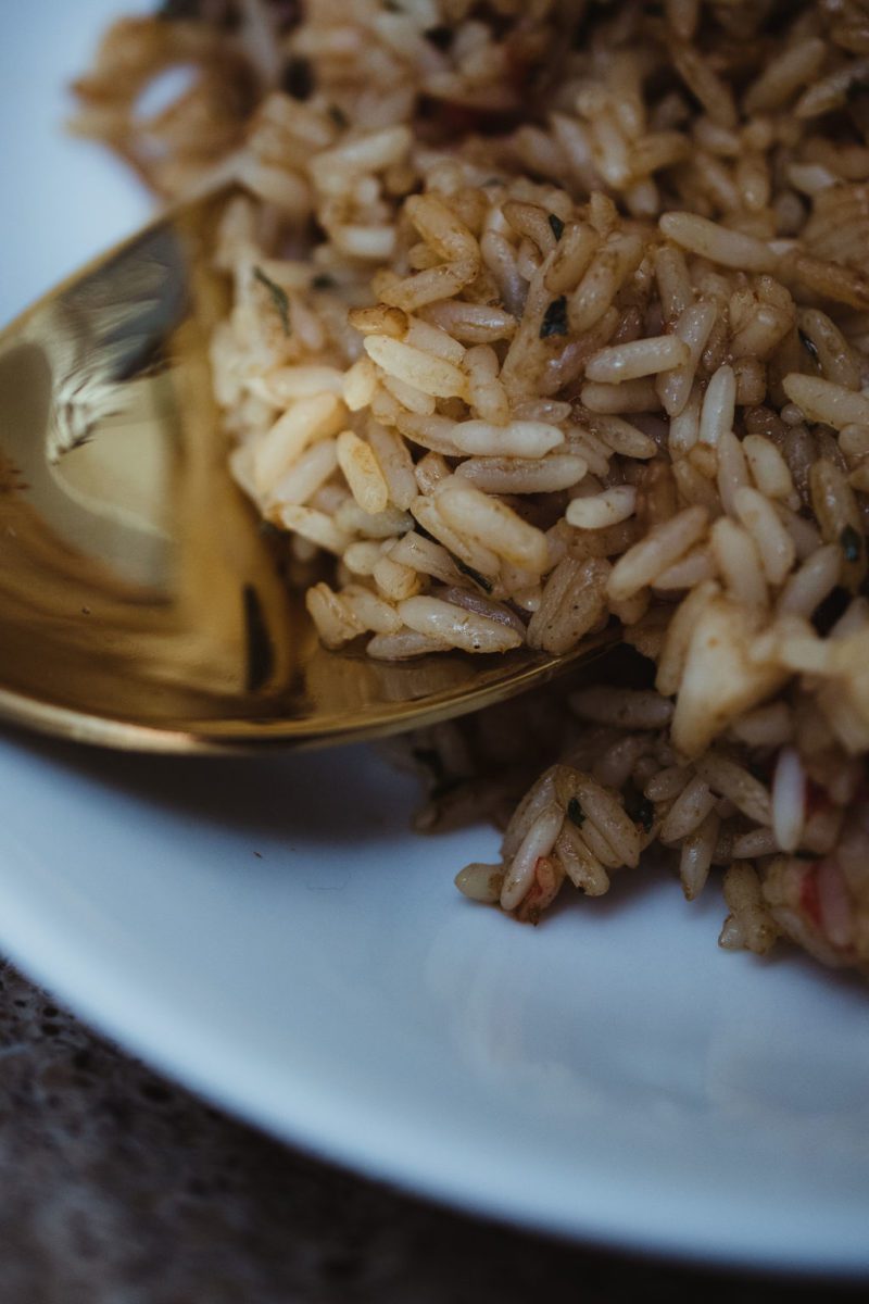 This seafood rice is a Lowcountry staple and the pops of red from the shrimp are a perfect homage to traditional Juneteeth foods.