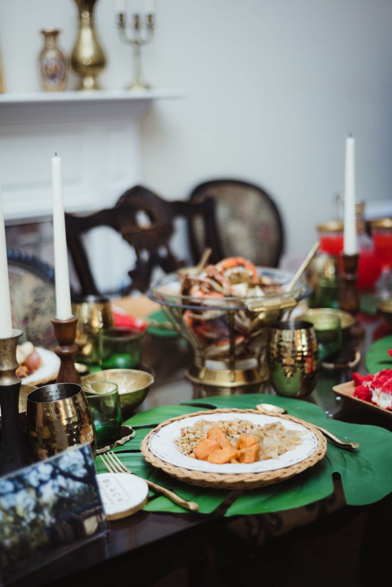 For this tablescape, I used a mixture of greens, golds, black, white and woods to create a modern yet natural style for this Juneteenth celebration.