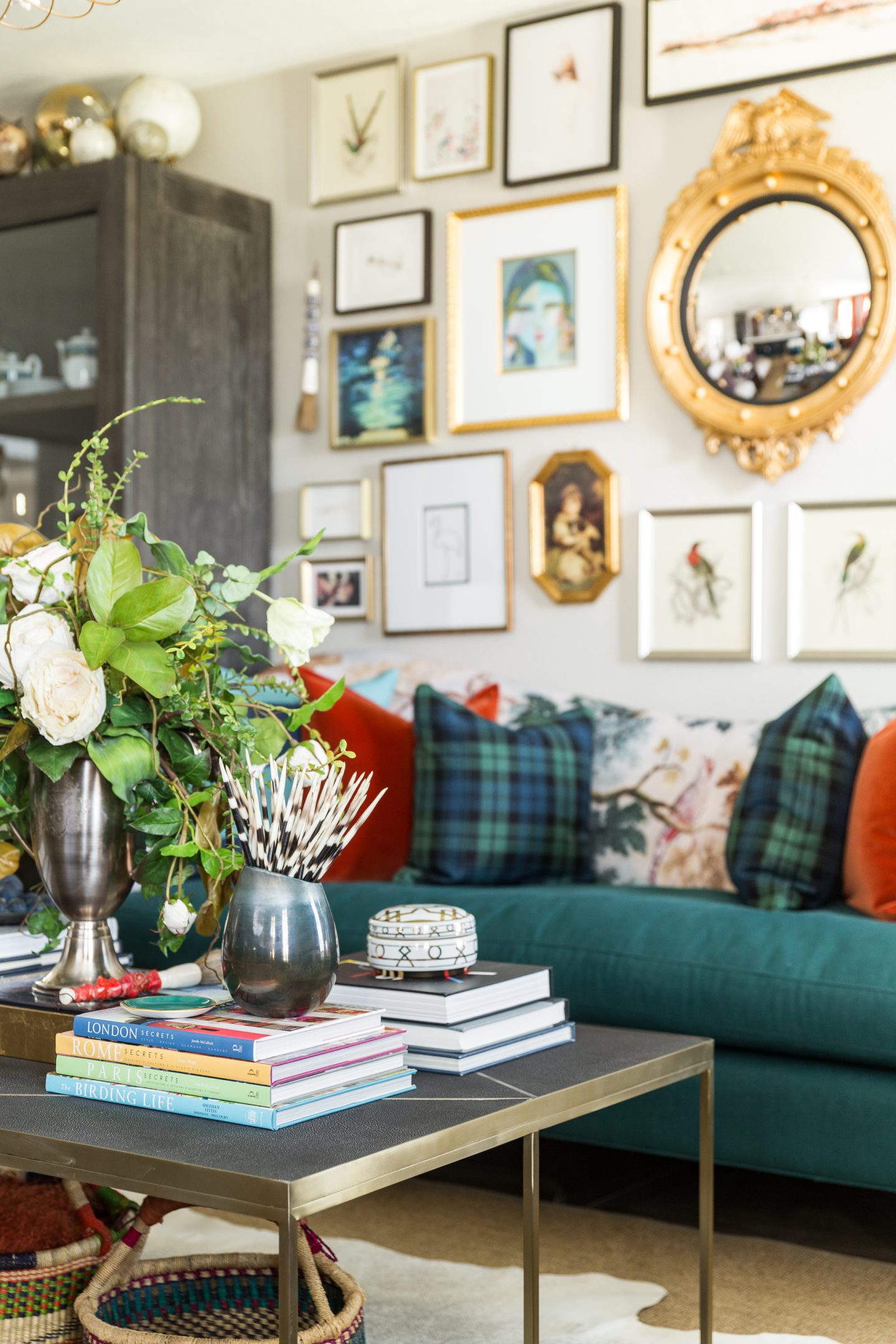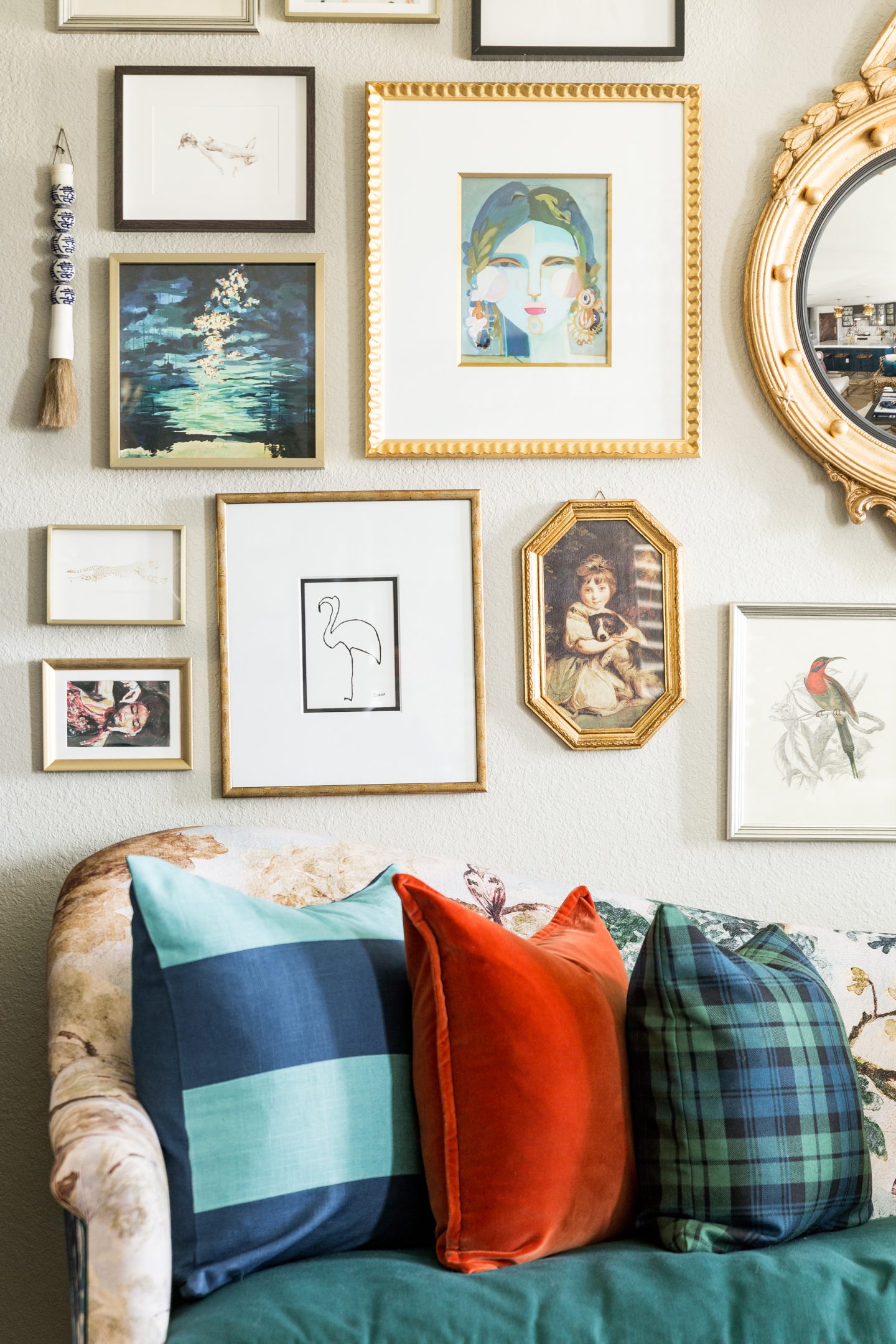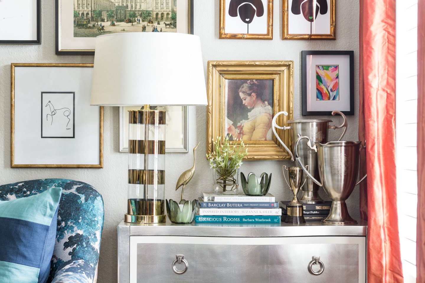 Gallery Wall Gone Wild: A gallery wall is a great way to anchor a maximalist room by creating a focal point for guests to engage with and to balance the other design elements in the space. Use a classic piece such as a gold mirror or family painting to be the centerpiece of the wall and tell the story of the room. Above all else, have fun with and don’t be afraid to express your unique life story and personality through your gallery wall and to it as you collect throughout the years.