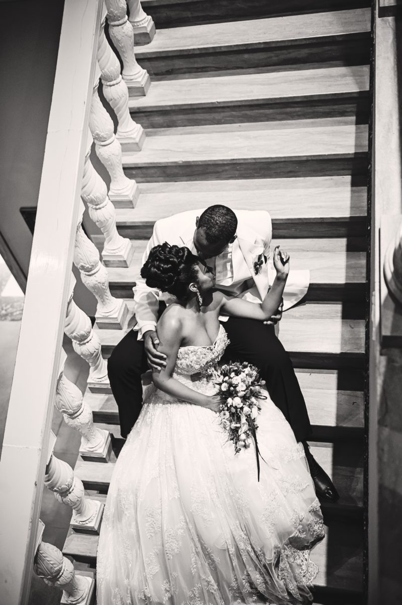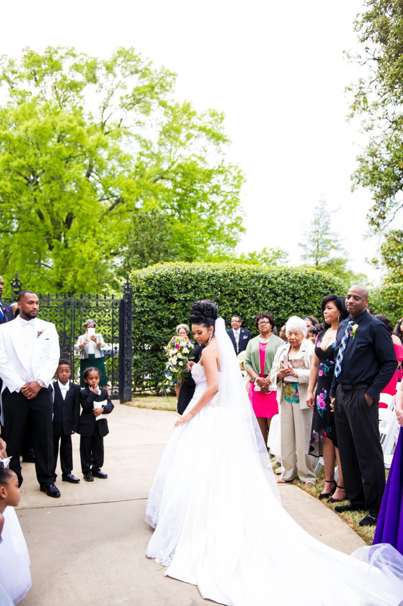 We adore this floral archway and classic garden style wedding ceremony.Such a beautiful moment between the bride and groom on the staircase.We can’t enough of a beautiful train. Such a classic southern wedding style.Can’t get enough of the beautiful florals adorning the classic white wedding cake.We love the image of the wedding ceremony from the wrought iron fences.Marriage always starts off better with a great laugh together.You can never go wrong with a classic black and white photo of the new couple heading off to their wedding reception.