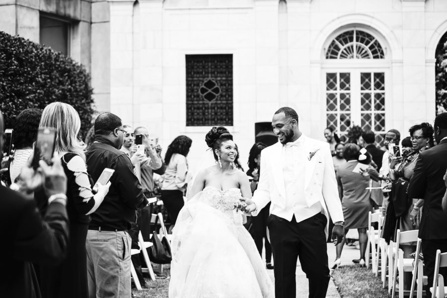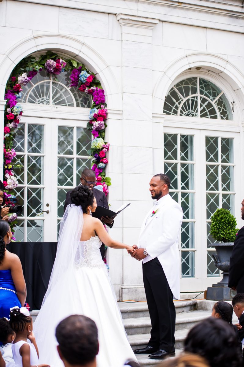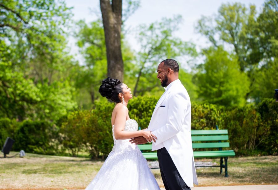 Today we are sharing an adorable Memphis Wedding. This adorable had a wedding in the bride’s hometown and we adore their bold color choices. According to the bride “I am from Memphis, TN and he is from Rialto, CA. We met through football; I was working in the U of Memphis football department and we recruited him to play football and we’ve been together since 2013″ We are so honored to share this Memphis Wedding Fun at the Brooks Museum of Art. Be sure to share images of your favorite southern weddings using the hashtag #blacksouthernbelle