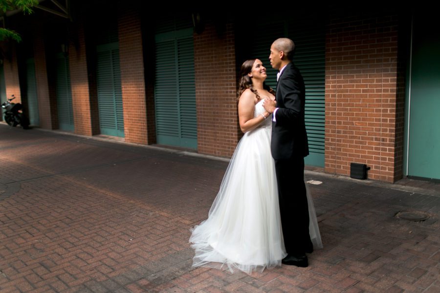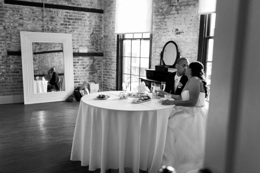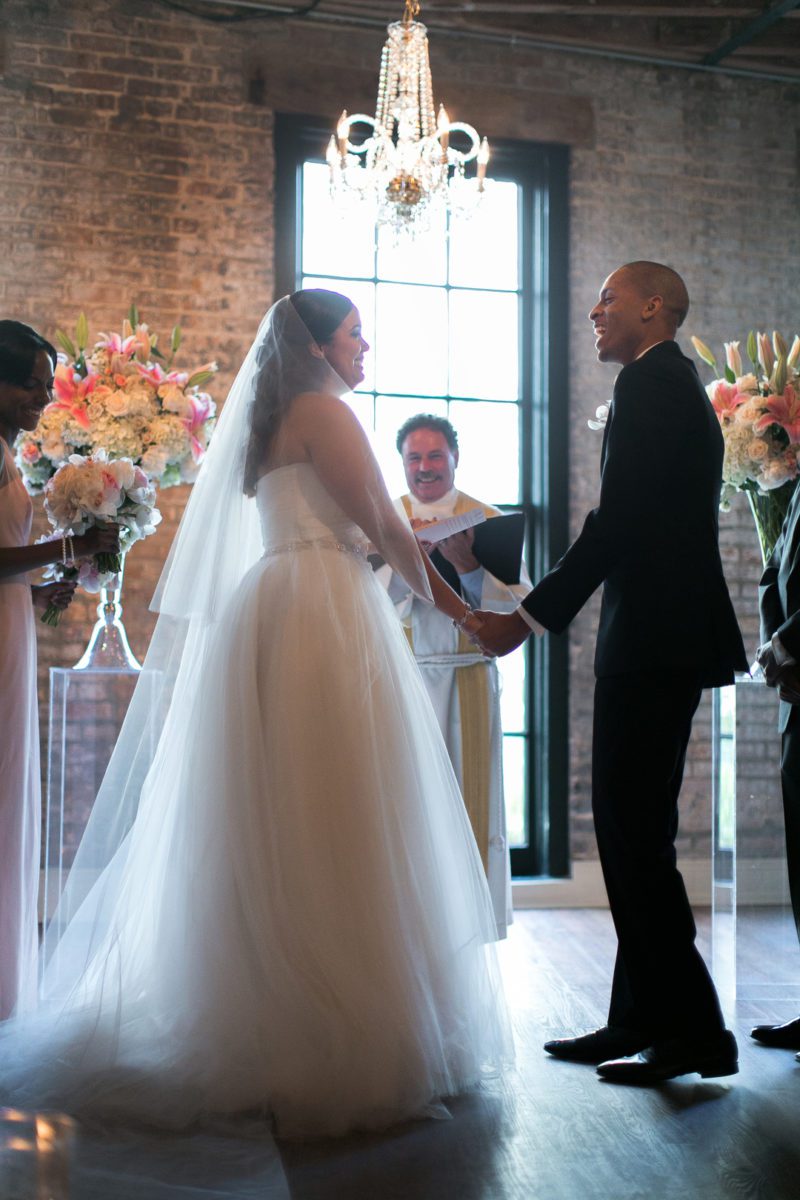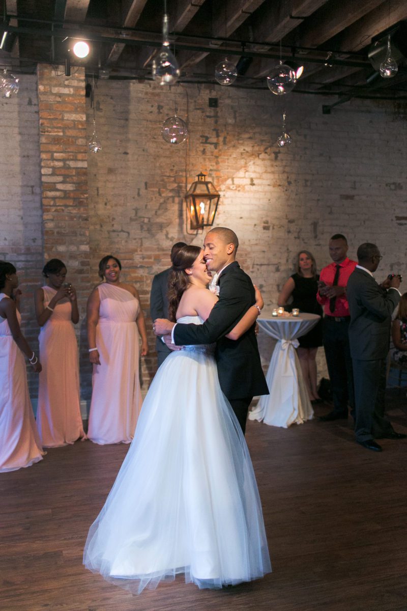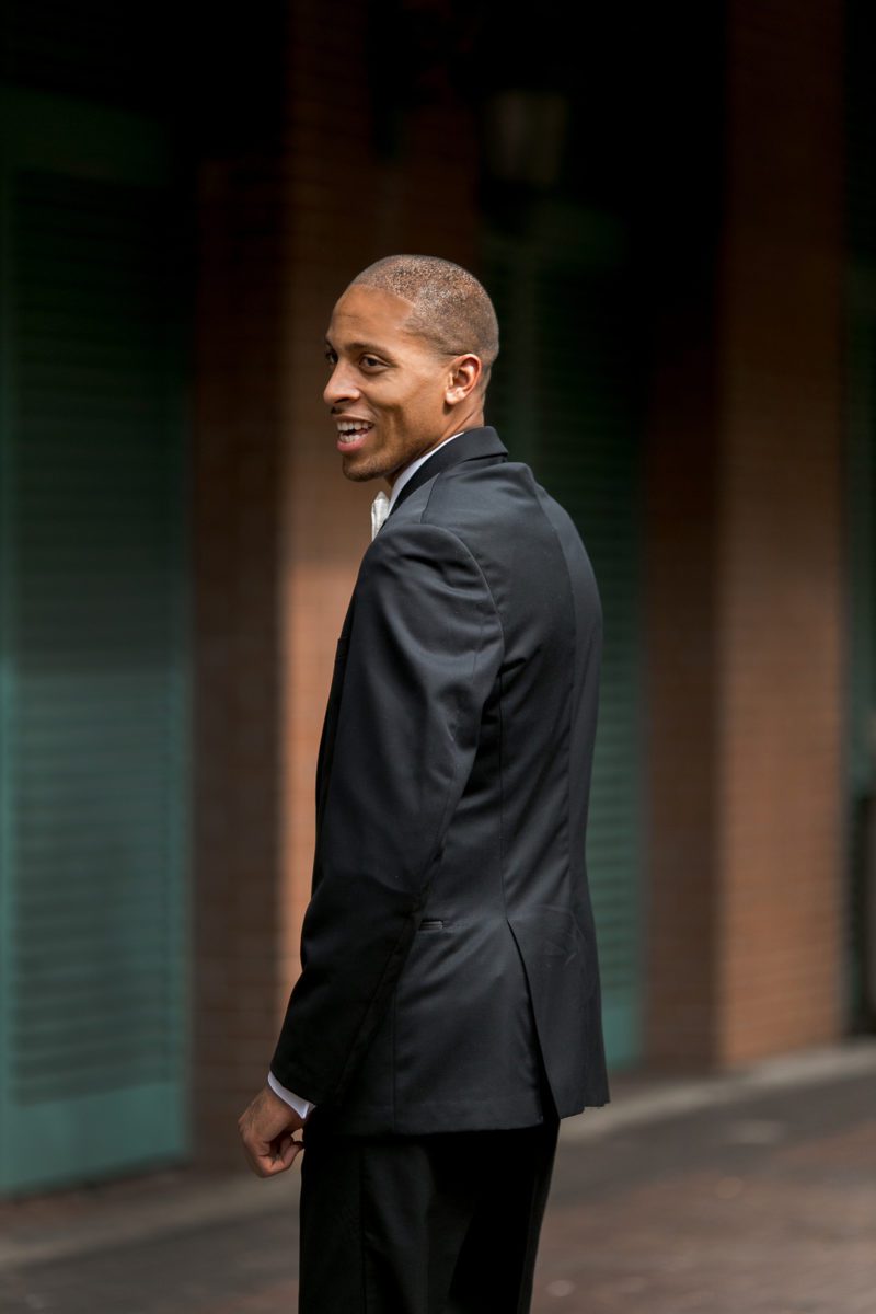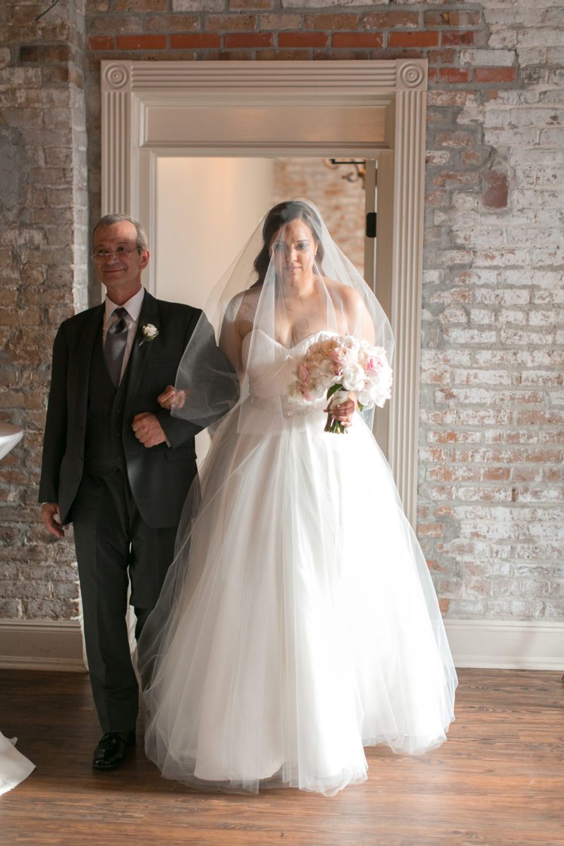 The wedding venue, The Chicory has always felt like a small slice of New Orleans to me. It has a rustic charm about it with it’s exposed brick, hardwood floors, exposed beams, gas lanterns, and old windows just to name a few. Then when you fill the space with a wonderful group of people and some lively music, the place comes alive! I feel like I’ve known Magali and Jonathan for awhile now. We first did their engagement photos early last year, and had a blast getting to know them. Then last November we got to meet Magali’s dress designer Nardos Imam at the Engage Luxury Wedding Summit that we attended. It was really fun to get to meet the designer for one of our brides! So it just felt that the anticipation for this wedding had been building for awhile. We were so excited for Magali and Jonathan to tie the knot at the Chicory. We know that New Orleans is very special to them, and they were looking forward to showing their families all the reasons why they love New Orleans they way they do. They had family traveling in from all over the place, and much of Magali’s family is actually from Liege, Belgium.  They all had a wonderful New Orleans experience, with everyone having a great time!