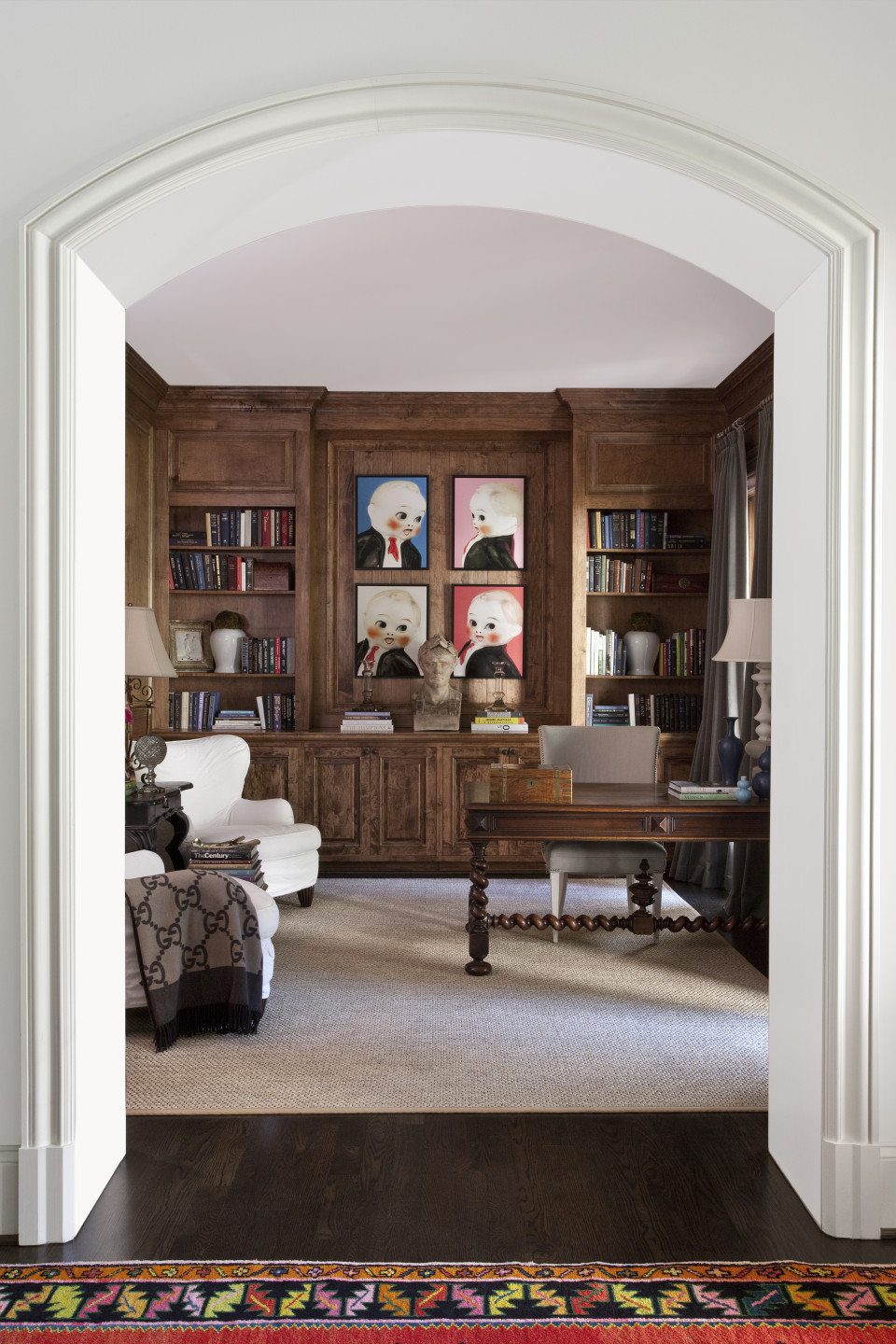 A great rug can tie in all of your design elements. Pull from the beautiful colors for your design inspiration and you can recreate the magic in this well styled room.A gallery wall and an archway were meant to be together. This study is a well styled sanctuary of productivity for any busy southerner.