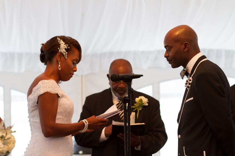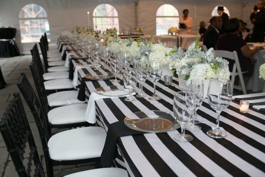 True love has no gray areas, it’s either black or white. This Richmond wedding set the tone for a timeless love with black and white decor, beautiful roses and striped linen. Learn more about Marchelle and Ken’s sophisticated wedding below.