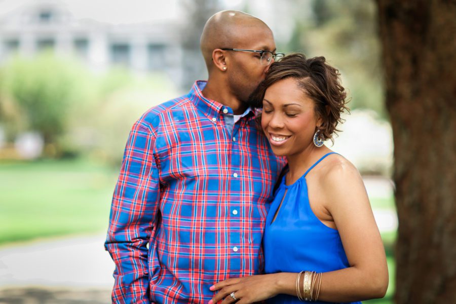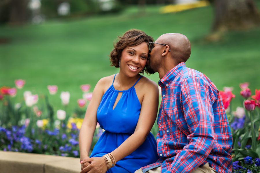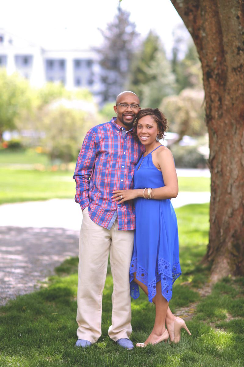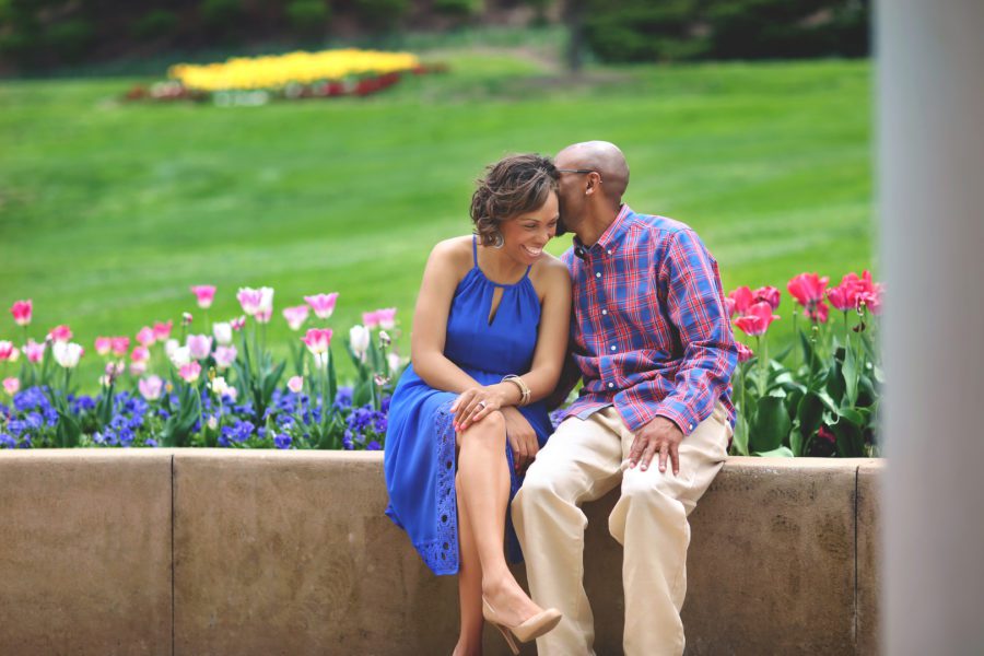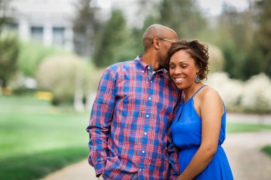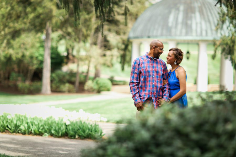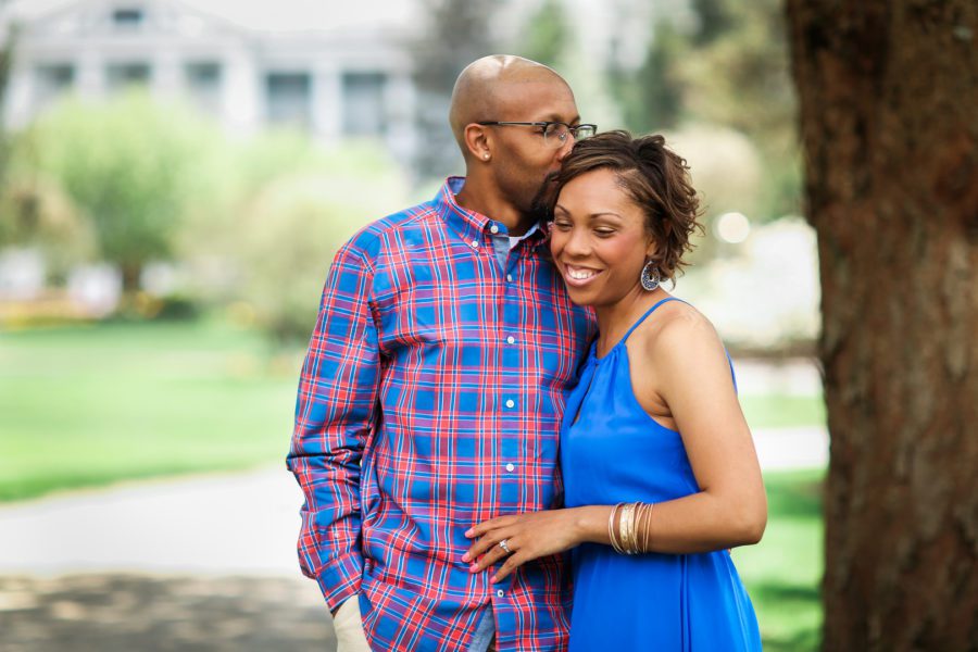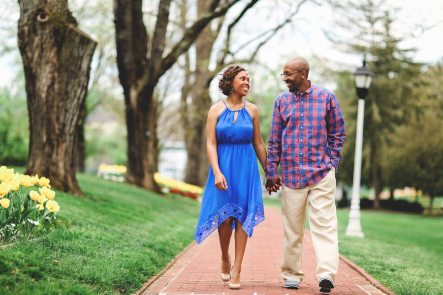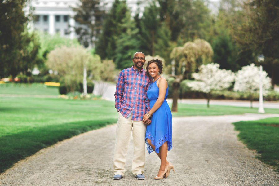With lots of scheduling conflicts throughout the course of our correspondence we ended up shooting midday with Keisha and Larry at The Greenbrier Resort in White Sulpher Springs, West Virginia. If super sunny, the plan was to shoot our entire engagement session indoors, and while The Greenbrier is breathtaking (inside and out), it was really my hope for an overcast day so we could take advantage of the beautifully landscaped grounds at America’s Resort. It seems Mother Nature was partially on board and decided to give us a cloudy day, and while we spent a lot of our time waiting for the sun to go back behind a cloud, it also gave me a chance to get to know Larry and Keisha more! It’s such a small world, because Keisha and I know a lot of the same people, even though we had never met!